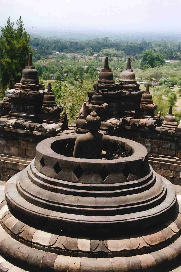 Van Jakarta; drukke stad met de locale bus naar Borobudur; werelds grootste boeddhistische monument. Yogyakarta: Kraton, waterpaleis, sultan palace, Prambanan; hindoeïstisch tempelcomplex. Bromo krater bij zonsopgang. Lovina Beach even ontspanning. Met scooter de Lovino toch gereden: met gitgit waterval, Hindoe tempel, paar meren en watervallen en de Holy hotsprings in Banjar.