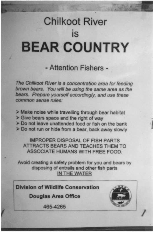 Visitor Center van Haines want dat was gisteren al gesloten toen we vanuit Skagway in Haines arriveerde. We ontdekken daar dat er bij de Chilkoot River/Lake beren te zien zijn die de Salmon komen vangen, want er zijn vanuit Haines enkele touropperators die daar naar toe gaan. Hebben wij even geluk dat we zelf touropperator zijn. Bij aankomst aldaar eerst nog even een Bald Eagle gefilmd en enkele heftige foto’s gemaakt van deze prachtige omgeving. We zien inderdaad dat er overal waarschuwingsborden voor beren hangen, dus we vragen aan èèn van de vissers of hij Familiar is with this Area, hij blijkt van Haines te komen en neemt alle tijd om ons uit te leggen hoe het er aan toe gaat met de beren in dit gebied. Het wordt ons al snel duidelijk dat het hier te doen is, volgens hem zijn we enkele weken te vroeg omdat de beren dichter tegen de winter in grote getalen zalm komen eten hier. Echter gisterenavond, toen wij rond het kampvuur zaten, zijn er hier nog drie beren gesignaleerd. Dus we zoeken een mooi uitzicht plaatsje en wandelen eerst nog wat langs de rivier en maken wat praatjes met vissers aldaar. Vroegavond (+/- 20.00 uur) beginnen er diverse auto’s driftig langs de rivier te rijden en een bestuurder van een busje vraagt mij of er al beren gesignaleerd zijn, nog niet dus, maar hij verteld mij dat we continu op en neer langs de rivier moeten rijden omdat