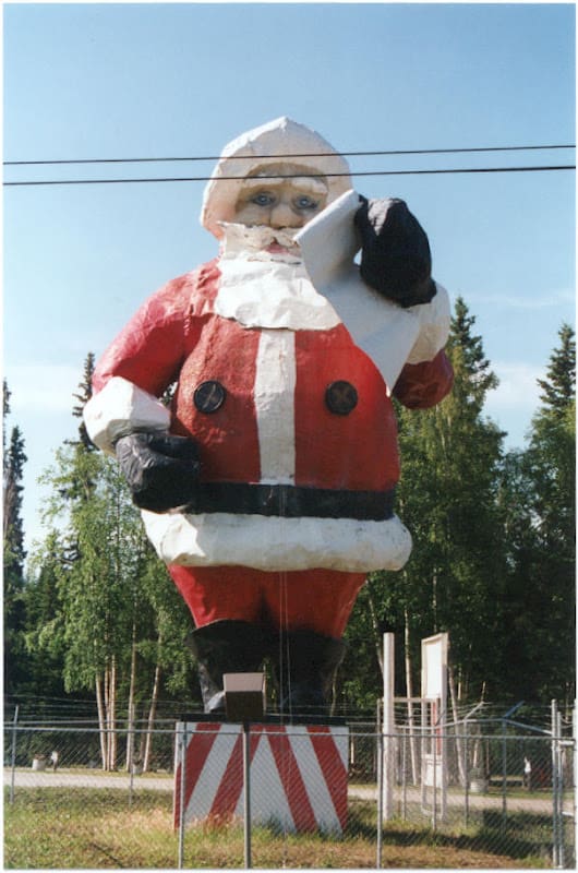 29 juli: Na een lekker ontbijt (eten is altijd lekker, vooral op vakantie) onze weg richting Fairbanks vervolgt. In het mooie plaatsje Nenada een foto stop gemaakt, daar staat een driepoot van hout, een exemplaar uit de jaren ’70, deze driepoot wordt gebruikt in de winter en enkele centimeters diep en het ijs van de Tanada rivier verankerd, zodra het ijs breekt en de driepoot valt dan stopt een op de oever aangesloten klok. Op dit bewuste tijdstip worden weddenschappen afgesloten. Verder zien we hier nog enkele zeer oude houten huisjes en een oud houten transport bootje. Na het bereiken van Fairbanks, even gewinkeld en getankt, daarna eerst koffie met zeer vette chocolade, die we enkele dagen later nog in de Pick-up hadden liggen, vet, vet en nog eens vet!!! We verlaten Fairbanks even om naar het nabij gelegen plaatsje North Pole te rijden. Hier gaan we het Santa Claus House bezoeken, en dit is de moeite waard, het huis is prachtig beschilderd aan de buiten zijde en er staan twee grote kerstmannen buiten. Dus maar even naar binnen, nog nooit zoveel souvenirs en kerstartikelen bij elkaar gezien!! Wij dus ook nog een aandenken gekocht, en even op de foto / video met de “echte” Santa Claus, yoho yoho yoho and a mery, mery christmas. We laten ons eigen nog even inschrijven op Santa’s good list, zodat we kerst een kaartje van de kerstman krijgen, die we ook netjes gehad hebben!! Daarna eten op een bankje (geloof het of niet, weer in de korte broek en t-shirt) en op naar de Chena Hot Springs. Via Fairbanks de Chena Road op, dit is echt Moose gebied, en we zijn goed en wel onderweg en op afstand zagen we inderdaad een Moose, Pick-up langs de kant en fotograferen. Bezoek aan Chena Hot Springs, wat helaas niet veel voor stelde, wij zijn de geisers op IJsland gewend, maar de reuk hier was ongeveer hetzelfde (Rotte eieren). Maar goed, op de weg terug eer Moose gezien, en drie Lama’s (wij wisten niet dat die hier leefde, maar het schijnt dat die geïmporteerd zijn. Daarna de Pick-up op een mooi plaatsje langs de Chena rivier geplaatst, weer geen douche, dan maar het ijskoude water (+/- 3 °C) als douche gebruiken. Na de “douche” even lekker langs de rivier liggen zonnen (we zijn nog steeds in Alaska!!). Lekker eten klaar gemaakt en langs de rivier een kampvuur gesticht en lekker warm aan het kampvuur zitten te genieten, vakantie man gezellig hè!! Slapen!!