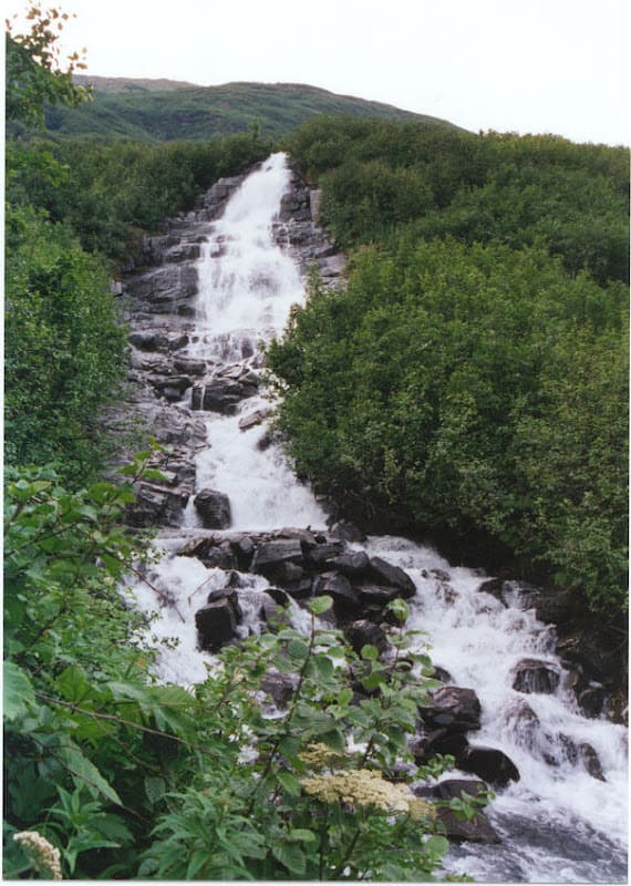 13 augustus: Na het bekende ontbijt even terug naar het centrum van Valdez om een lekkere douche te nemen, nog wat inkopen gedaan want we besluiten vanavond nogmaals te gaan barbeque. Na het volgooien van de brandstof- en watertank zeggen we vaarwel tegen Valdez, dit was een heftig plaatsje voor beren en vooral de zalmtrek was zeer bijzonder. We rijden weer de mooie Richardson Highway op, waar we het niet konden laten om nog enkele zeer heftige foto’s te maken, dit is werkelijk een prachtig gebied!! We gaan vandaag de Mc.Carthy Road op, waarvan ze zeggen dat het de “worst road of Alaska” is, het schijnt een zeer verlaten gebied te zijn dus we tanken nog maar even voordat we afslaan richting Chitina. Richting Chitina stoppen we nog even bij de Liberty Falls, waar we nog enkele mooie plaatjes kunnen