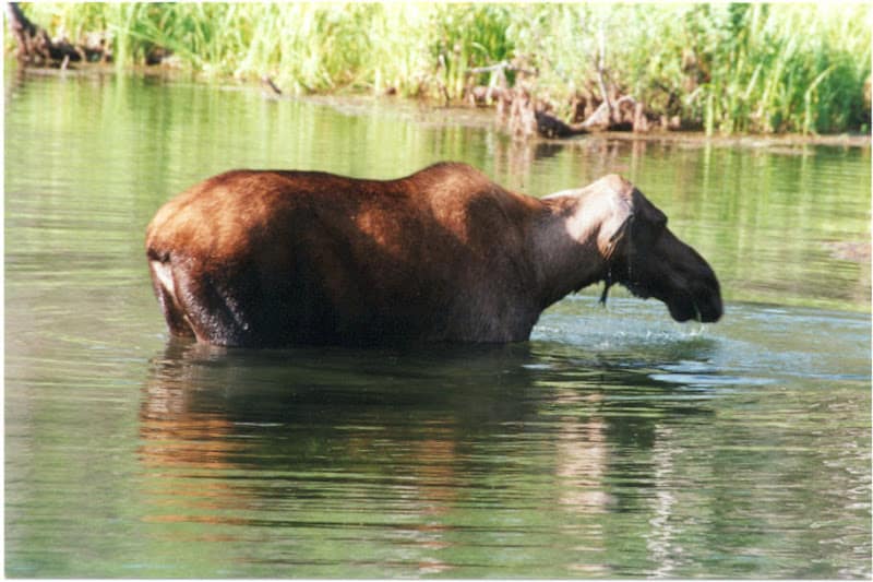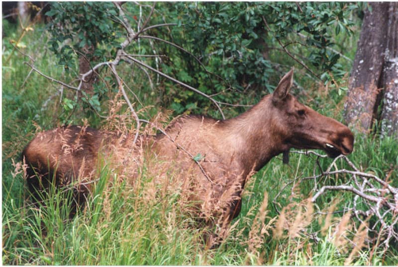 niet bedreigt, dus wij fotograferen en filmen nog maar wat, want van die kleine Moosejes hadden we nog niet mogen aanschouwen!! Even verderop komen we nog een Moose tegen en nog een Ma Moose met èèn kleintje. Onze vakantie is echt van het begin tot het einde boeiend, daar we vanmorgen eigenlijk al een punt achter de dieren gezet hadden. We fietsen naar het einde van de route, waar we omkeren en weer terug naar Anchorage City fietsen. Na deze zeer geslaagde fietstocht gaan we eerst douche bij de Inlet B&B en leveren onze gehuurde