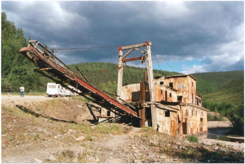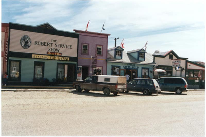 2 augustus: Na het ontbijt weer de Top of the World Highway opgezocht, richting Dawson City. We komen daar rond 10.00 uur aan, met de gratis veerdienst moeten we eerst nog even de beroemde Yukon River oversteken. Tijdens het wachten op deze veerdienst zien we nog een prachtige Rode Vos (Red Fox), met twee kleintjes (mooi!!) lopen op afstand. Bij aankomst zien we al snel dat dit een bijzonder plaatsje is, maar eerst tanken en even naar de supermarkt. We hebben geluk dat we midden in het plaatsje nog op de camping kunnen voor een nachtje. We halen eerst even kaartjes voor de show in het Palace Grand Theatre, die om 20.30 uur begint, dan zijn we een ieder geval zeker van onze aanwezigheid daar. We hebben een lekkere lunch in de Pick-up georganiseerd voor ons eigen!! Vanwege het zeer warme weer (bijna 30°C) was Helma niet geheel fit, we houden even rust in de Pick-up. We hebben zeer mooie foto’s en filmmateriaal van het plaatsje gemaakt. Na onze “city tour” hebben we een ijsco gelikt op een bankje voor een ijssalonnetje. We checken nog even onze e-mail en sturen nog wat richting Bergeijk, het was daar overigens niet duur (4 Dollar voor een uur internet). We gaan even eten op de camping en nemen meteen een lekkere douche, wat overigens wel lekker is na zo’n warme dag. Op naar de show, we hebben die kaartjes overigens niet voor niets. We mogen niet filmen tijdens de show, die geheel in traditie van het oude goudzoekersplaatsje is, geen versterkers en microfoons dus!! Puur natuur maar wel zeer heftig, en de lachspieren zijn weer opgerekt. We gaan in een cafeetje, waar diverse afstammelingen van de indianen aanwezig zijn, nog even wat drinken, een lekker koud Canadees biertje gaat er wel in. Op naar de camping, morgen is er weer een dag. Welterusten!!