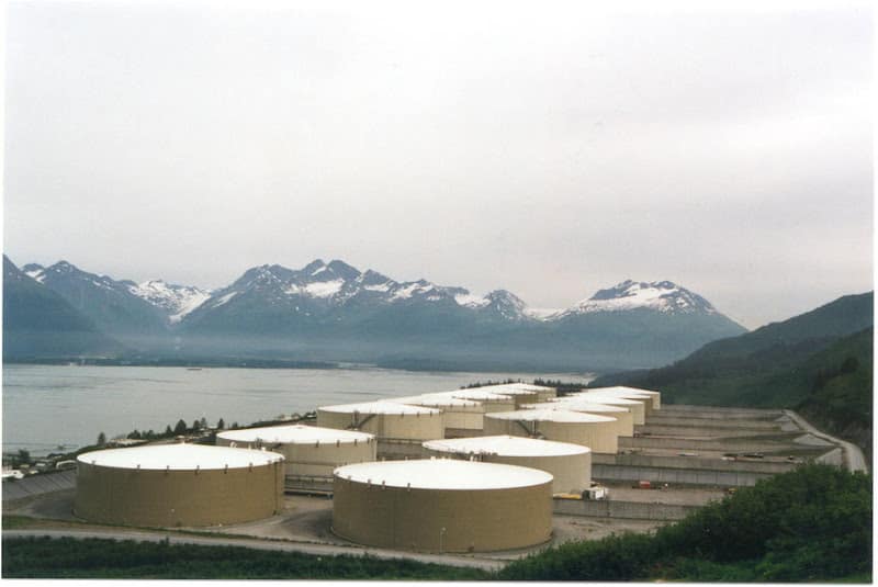 12 augustus: Na het ontbijt rijden we naar de Pipeline Terminal, we willen graag een excursie doen op de Terminal, dit blijkt echter alleen mogelijk te zijn vanuit Valdez met Valdez Tours. Dus terug naar het centrum van Valdez waar we meteen een excursie organiseren (vertrek 13.00 uur). Onderweg zien we nog een zwarte beer vissen, maar deze nokt hem meteen af zodra we stoppen, vanavond gaan we weer op beren jacht. We gaan in Valdez meteen even naar de winkel, e-mail verstuurd en gelezen en we hebben alvast Public Showers opgespoord voor morgenvroeg. In een cafeetje aan de haven een bakje koffie gedronken, waar we na het winkelen nog even terug gaan om een lekkere sandwich met aardappelsalade te eten. Op naar Valdez Tours voor onze Alaska Pipeline Terminal excursie. Van deze Pipeline werd op