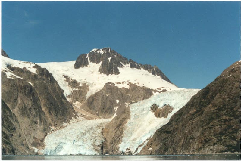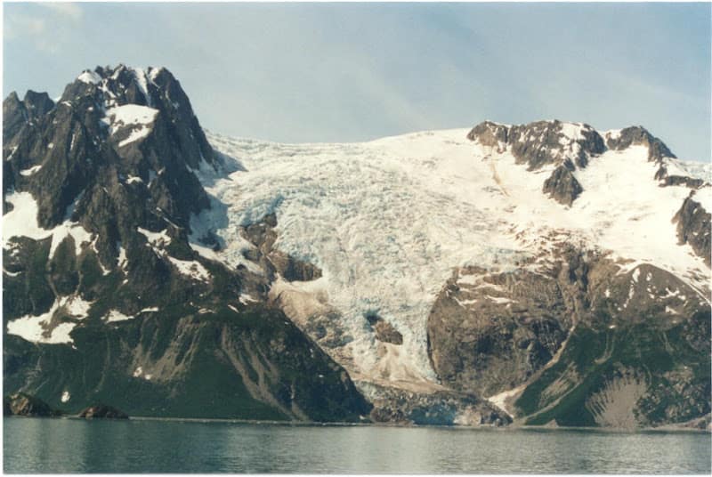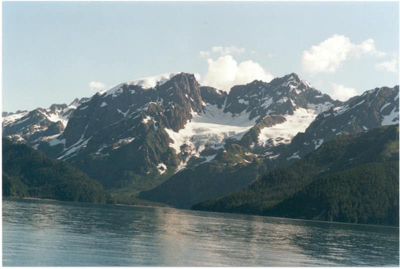 24 juli: Weer vroeg uit de veren (06.15 uur), ontbijt, wassen en weer op pad. Via een “gravel road” (onverharde weg) door het Kenai National Park. In een klein stroompje een gigantische hoeveelheid zalmen gesignaleerd, uiteraard weer het een en ander vastgelegd. We willen een wandeling maken naar het Skilak Lake toe, op de parkeerplaats waar de wandeling begon nog met een Amerikaan (ex Alaskaan) staan te praten, toffe gast. Ons valt op dat bijna iedereen, die de omgeving kent een jachtgeweer bij zich heeft tijdens wandelingen, dit is volgen die “toffe gast” toch vanwege het gevaar voor beren (Bears). We besluiten toch te gaan, die “toffe gast” komt toch nog achter ons aan, met een jachtgeweer!! Wij zijn niet bang, of toch wel een beetje??? We hebben in ieder geval onze Bear Bells aan de rugzak hangen. Helaas weer geen Wild Life succes (m.u.v. de zalmen), ook niet tijdens de rest van onze tocht door het Kenai National Park, zitten hier dan toch niet zoveel wilde beesten??? Onze tocht richting Seward vervolgd. Eerst een bezoek aan Exit Glacier gebracht, deze bevindt zich net iets buiten Seward. Deze prachtige en goed bereikbare gletsjer uiteraard weer op diverse plaatsen vastgelegd voor het naslagwerk voor later. We brengen nog even een bezoekje aan IdidaRide Sled Dog Tours, ze organiseren daar tochten in slede getrokken door sledehonden, vandaag wordt dit niets meer dus we maken een reservering voor overmorgen (09.00 uur) want morgen hebben we de Kenai Fjords Tour. Daarna een bezoekje gebracht aan Seward, en meteen even wat informatie (over het vertrek e.d.) ingewonnen bij Kenai Fjord Tours. Daarna meteen even naar de visvangst van Seward gekeken, die werd net binnengehaald. Seward is een mooi plaatsje gelegen aan de Kenai Fjords, ook hier is het weer behoorlijk toeristisch, wij zelf verwachten over enkele dagen, als we richting het noorden reizen, dat we wat meer in de “middle of nowhere” terecht komen, we zien wel. Daarna op zoek naar een slaapplaats, we rijden inmiddels weer richting de Exit Glacier, dit is een rustige weg met diverse inhammen, waar je goed kunt overnachten. En plotseling, in zo’n inham, daar zit gewoon een “Black Bear” (zwarte beer), maar die vlucht na het stoppen van ons voertuig snel de bossen in. YES, er zitten hier dus echt beren!!! We besluiten in deze inham te overnachten, misschien komt hij/zij terug?? We leggen wat brood met jam neer en zetten een bekertje zoet neer (beren komen op zoetigheid af), mag eigenlijk wel niet, maar wij zien toch ook niet elke dag beren in het wild. Vlug even gegeten (trekkers voedsel pakket klaargemaakt), en de avond rustig voor in de auto doorgebracht. Helaas weer niets, maar het was wel spannend. Dus met de videocamera naar bed, want we moeten morgen op tijd uit bed vanwege onze Kenai Fjord Tour (Tijdsduur van die tocht negen en een half uur!!).