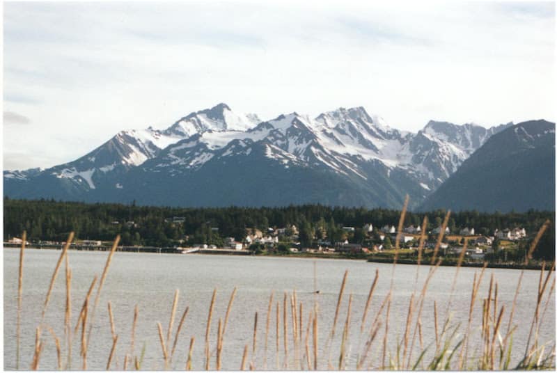 vertrekt, we hebben dus nog wat tijd om in Skagway rond te hangen. We doen nog even boodschappen, onze e-mail gelezen en weer een stukje reis digitaal verstuurd. We eten nog wat in Skagway en wandelen nog even rond door dit leuke plaatsje. We sluiten op tijd aan voor de boot, die netjes op tijd vertrekt naar Haines en die ons even later weer netjes aan wal laat rijden in Haines. We gaan weer direct op zoek naar een slaapplaats, die we vinden net buiten Haines in het Chilkat State Park. De gevonden Campsite kost ons vijf Dollar, waarvoor we bij een nabij gelegen Lodge naar een gratis informatieavond kunnen gaan. We besluiten na het eten naar deze avond toe te gaan. Het blijken de eigenaars van de Campsite te zijn, die uit Virginia (USA) vandaan komen en jaarlijks een behoorlijke periode in Alaska vertoeven. Vanuit de Lodge hebben we een prachtig gezicht op “The Valley of the Eagles” en we kunnen met hun verrekijker (Far away looker) nog even naar een aantal zeehondjes kijken die daar leven. We blijken de enige te zijn deze avond, dus steken Mr. John en Ms. Virgel Ann het kampvuur aan. We hebben gezellig zitten praten met deze mensen en zij hebben ons van alles verteld over de diverse vogelsoorten in Alaska. De avond vliegt voorbij en ze waarschuwen ons nog voor de beren (Bear Caution), die daar in de omgeving leven. Op naar de Pick-up en slapen!!