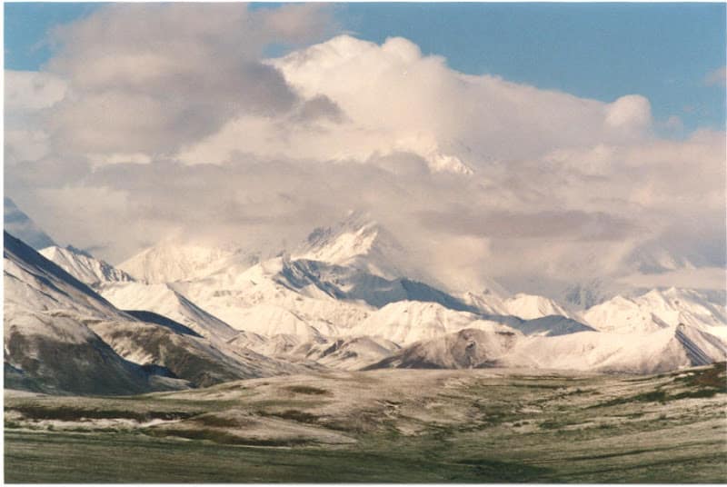 28 juli: Om 04.00 uur uit bed (we hebben vakantie!!), vlug “bever” ontbijtje, wat eten en drinken mee voor de gehele dag en op naar Denali Park. Vertrek bus om 05.15 uur, we hebben een leuke buschauffeur. De chauffeur legt eerst even wat regels uit en iedereen moet even vertellen uit welk land hij of zij vandaan komt, de chauffeur vindt het leuk om met een internationaal gezelschap te rijden. We zijn dus weg voor een trip door Denali van elf uur!!! De bus zit gelukkig maar half vol (wat wil je op dit tijdstip), maar we kunnen zo aan alle kanten alles goed zien en eventueel fotograferen en filmen. Het is nog koud en we zijn nog maar net weg en het begint te sneeuwen!!! De chauffeur verteld als iemand vanuit de bus iets ziet (Wild Life en/of een mooie fotostop) hoef je alleen maar het woord STOP te roepen en de chauffeur zal zo snel mogelijk proberen te stoppen. We rijden al een twintig minuten door het park en plotseling staat er een “Moose” in een vijvertje langs de weg, maar door de hevige sneeuwval kunnen we hem niet echt goed zien. We hopen dat het weer nog iets beter wordt, maar ze hebben niet veel goeds voor vandaag voorspeld. Even later op een bruggetje zien we een prachtige “Red Fox” (rode vos) lopen, die even nieuwsgierig komt kijken, die beesten hier hebben toch niets te vrezen. De sneeuwval is inmiddels gestopt en we zijn al diverse malen gestopt voor prachtige foto’s. Langs een rivier zien we een “Moose” liggen, volgens de chauffeur ligt hij daar al enkele dagen, want hij schijnt aangevallen te zijn geweest (wolven??). We rijden door het prachtige Denali Park en het weer is intussen behoorlijk opgeklaard, zo nu en dan schijnt de zon, wat prachtige panorama’s oplevert, vooral ook omdat het vanmorgen al behoorlijk heeft gesneeuwd. STOP, er wordt een moeder “Grizzly Bear” met twee “Cups” (kleintjes) gesignaleerd, helaas is de afstand iets te groot om dit goed vast te leggen. We zien diverse roofvogels, waaronder de zeer mooie “Golden Eagle”. Op afstand kunnen we Mount McKinley zien liggen, deze is met zijn hoogte van 6194 meter de hoogste berg van Noord-Amerika, helaas is het bovenste gedeelte van de top nog omringd door wolken, maar het weer is al een stuk beter, maar het is wel behoorlijk koud in het Park. Na diverse stops voor eten en drinken, komen we aan bij het Mt. McKinley Visitor Center, we stoppen hier een half uur en kunnen hier de berg goed zien. We gaan weer verder naar Wonder Lake onze eindbestemming. We zien nog diverse “Caribou’s” en “Dall Sheeps” onderweg, hoewel deze schapen zich in de zomer op grote hoogte bevinden, kunnen we ze toch redelijk goed zien. Aangekomen bij het Wonder Lake, staat er weer een pauze op het programma, maar gezien de hoeveelheid muggen aldaar, zitten wij weer snel in de bus. We zitten inmiddels alweer in ons t-shirt, voor de weg terug, we gaan nu over dezelfde weg weer vijf en een half uur terug. Ramen weer dicht want we gaan weer vertrekken, er zitten van die klapraampjes in de bus, want zodra we iets zien klappen we die snel naar beneden. STOP, er staat een prachtige Grizzly vlak langs de weg, hij is wat besjes en bladeren aan het eten en vindt het prima dat wij even stoppen, prachtig zo dicht bij zo’n beer die daar gewoon leeft en ons aankijkt met een blik van “o, jullie zijn bij mij op bezoek”. We leggen natuurlijk het een en anders vast op de gevoelige plaat. Mooi, we gaan weer verder, houdou beertje. Twee andere Nederlanders roepen weer meteen STOP, zij kunnen niet genoeg krijgen van de beer. Vervolgens zien we nog