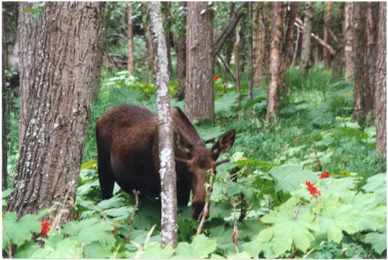 17 augustus: Laatste ontbijtje in de Pick-up!! Op naar Anchorage want vandaag moet onze auto ingeleverd worden bij Compact RV Rentals. We drinken onderweg nog een bakkie koffie en we gaan er van uit dat we nu de wildernis van Alaska gaan verlaten en dat we geen Wild Life meer zullen zien. In Anchorage aangekomen gaan we eerst even onze spullen afzetten bij Inlet Bed & Breakfast, alwaar we echt onze laatste Alaska nacht door zullen gaan brengen (althans voor 2000). We hadden bij onze eerste B&B (Earth B&B) beloofd na ons avontuur nog even op de koffie te komen en nog wat verhalen te vertellen, dus zo gezegd zo gedaan. We drinken bij Margriet koffie en vertellen onze verhalen, we hebben veel meegemaakt, in ieder geval veel Wild Life wat lang niet iedereen gegunt is. Ze adviseert ons om vanmiddag nog even twee fietsen te huren en de Coastal Trail Route te fietsen, er schijnen daar veel Moose te zitten!! We hadden eigenlijk al een punt achter het Wild Life gezet maar wie weet. Dus eerste onze Pick-up inleveren, we hadden gelukkig geen problemen met de wagen gehad, dus dit