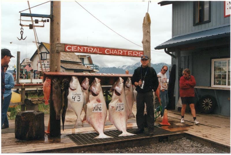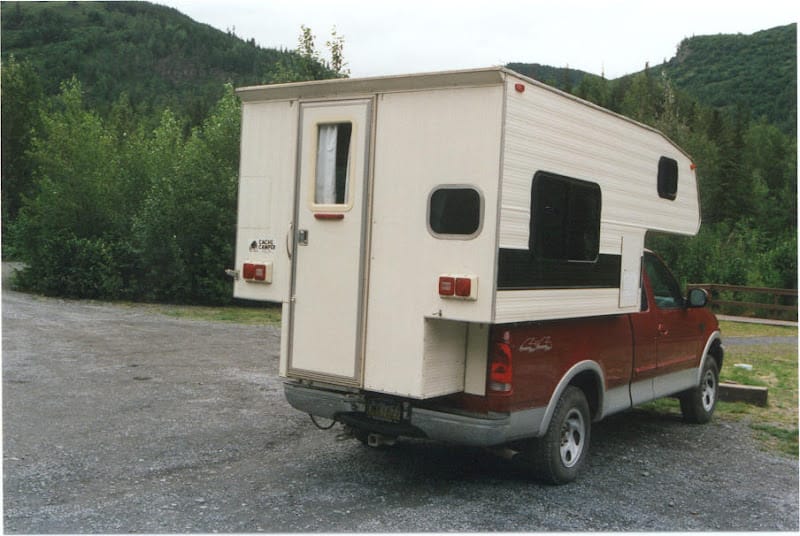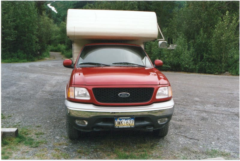 22 juli: 06.30 uur wakker, gedouched en lekker ontbijt gehad. Tijdens ontbijt wat met enkele vissers uit Frankrijk zitten te lullen en Bill (de man van Margriet) wat informatie over Alaska gevragen, Bill was een heftige gast. Car Rental gebeld, want die komen ons hier oppikken. Afscheid genomen en belooft dat we over vier weken nog op de koffie komen met onze verhalen, want we slapen onze laatste nacht niet hier zoals we hadden verwacht, maar Margriet zat dan vol en had ons bij een andere goede B&B (Inlet B&B) ondergebracht. Bij aankomst bij Car Rental werd door ons gesignaleerd dat onze koffers in een Pick-up Camper werden geladen, waarop ik zei “zal wel een foutje zijn”, totdat de eigenaar ons uit kwam leggen dat de voor ons bedoelde Ford Explorer (4×4), vorige week flink was gecrashed en dat we onder dezelfde condities (onbeperkte kilometers en dezelfde prijs) deze Pick-up Camper mochten hebben, waarover wij niet moeilijk deden!!!! Dus niet camperen maar lekker in dit bakje slapen. Deze vervanger was ook een Ford F-150, met Airco (hebben we die hier nodig??), Cruise Control, Automaat en electrische ramen, gloedje nieuw (+/- 2000 km op de teller), met andere woorden een zeer heftige bak, hier redden we het wel vier weken mee. Dus eerst even inkopen doen, dat tikt lekker aan ($250,- te weten dat $1,- ongeveer fl.2,40 is). Toen kon