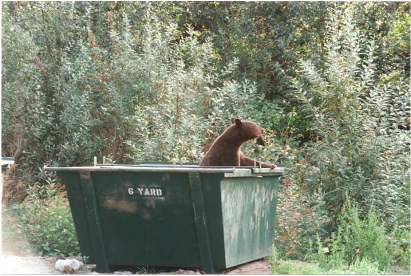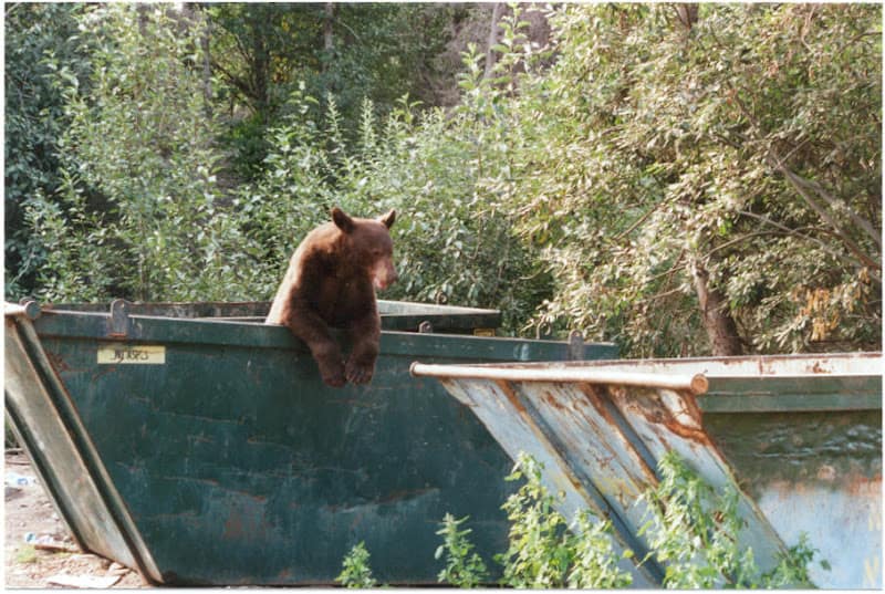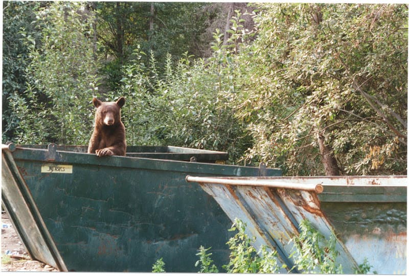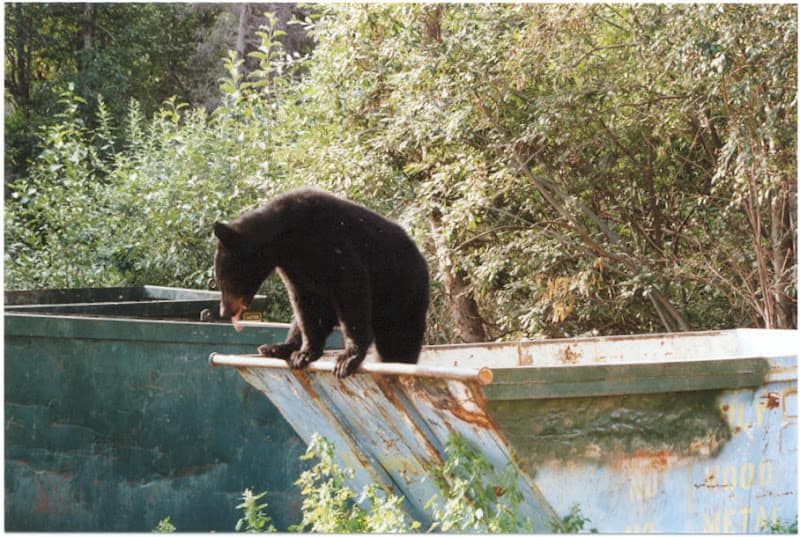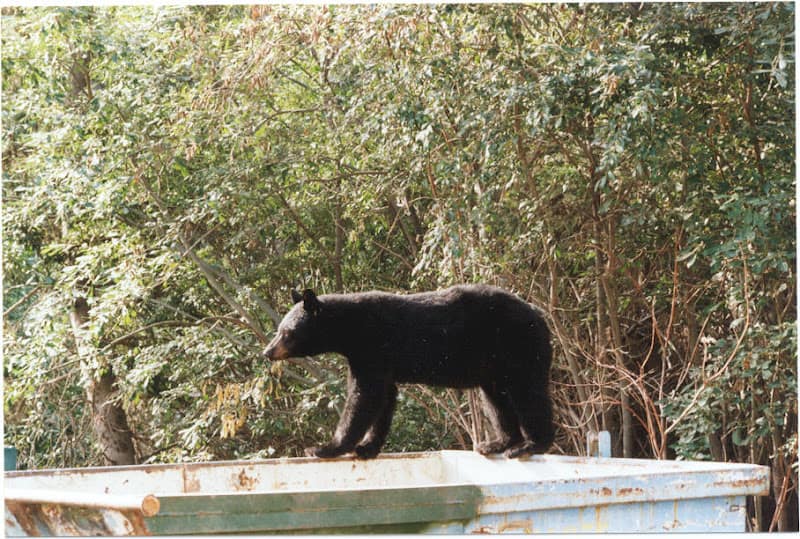 15 augustus: Ontbijten!!! We gaan weer terug naar Chitina want we hebben een stukje buiten dit plaatsje ons onderkomen voor vannacht gevonden. Onderweg zien we enkele vuilnis bakken staan waar we ons vuil willen dumpen, zodra we de auto stoppen om uit te stappen springt er een bruine beer uit èèn van de bakken. We laten de auto stil staan totdat de beer weer tot rust is gekomen en op zijn gemak verder gaat met snoepen uit deze vuilbakken. Wij vinden dit niet erg want wij kunnen op een afstand van +/- 3 meter mooi toekijken en fotograferen en filmen!! De bruine beer gaat aan de wandel en komt op onze auto af, ramen vlug dicht dus, en bekijkt dit voor hem vreemde geval op zijn gemak. Plotseling zet hij zijn voorpoten voor op de motorkap dus we moeten hem laten verschieten want als hij op de motorkap springt hebben we waarschijnlijk onkosten. We claxoneren kort en de beer nokt hem af, maar plotseling komt er nog een zwarte beer uit de bosjes gewandeld. De twee beren zoeken elkaar op en gaan op een paar meter voor de auto staan te stoeien, ongelooflijk