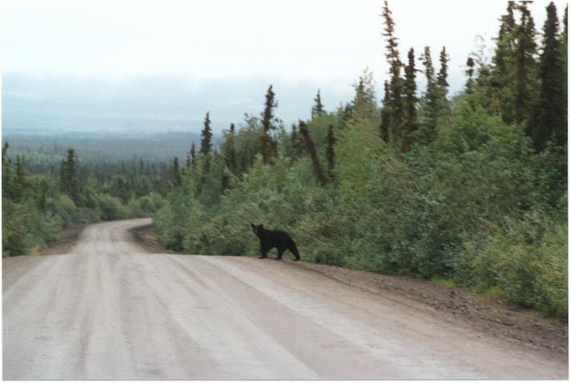 mooi!! Net op dit moment is ons fotorolletje vol, wat ik niet kan verwisselen want de filmcamera mag nu uiteraard niet stil staan. De zwarte beer zoekt de vuilbakken op en de bruine beer gaat links langs de auto liggen, inmiddels is het fotorolletje vervangen en kan er weer volop geknipt worden. Nadat er een auto passeert nemen de beren de benen, dit was zeer HEFTIG. We rijden ook weer verder en proberen in Chitina te bellen want Niels is vandaag jarig, helaas lukt dit weer niet vanwege die Credit Card (??). Onderweg maken we weer diverse zeer heftige foto’s en filmen nog wat van Mount Wrangell (14.163 ft hoog), dit is de grootste actieve vulkaan van Alaska. Mount Drum (12.010 ft hoog) prijkt mooi langs weg waarover we rijden. In Copper Center proberen we nogmaals te bellen, na het inroepen van telefonische hulp blijkt het niet aan onze Credit Card te liggen maar aan de telefoonmaatschappij, maar met deze informatie schieten we niet veel op want we kunnen dus niet bellen. We rijden naar Glennalen alwaar we wat inkopen doen, we kopen een snack met soep wat onze lunch moet