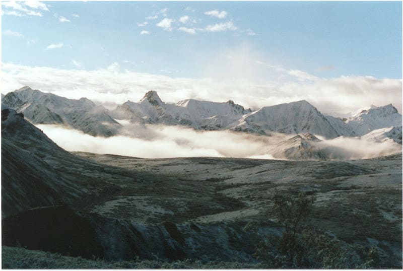 behoorlijk hoog, we rijden tussen de sneeuw door en zien diverse “Arctric Ground Squirrel” rond bazuinen!! We zien nog enkele prachtige dammen gebouwd door “Beavers” (bevers), dit zijn mooie bouwwerken, helaas zien we zo geen bevers in het water, jammer. Aan het einde van Hatcher Pass, maken we lekker maccaroni klaar met saus, we hebben toch maccaroni genoeg want in de steden hier is alles typisch Amerikaans, en zit alles in Mega verpakkingen, dus die maccaroni zit per 3 Kilogram verpakt!!! Daarna zeer lange weg naar Denali gereden, het weer is momenteel niet zo best, koud en regelmatig regen, maar wij hebben IJsland training gehad dus voor ons stelt dit niet veel voor. Nabij de ingang van het Denali National Park nog even getankt, we nemen hier een kop “koffie”, die we meteen dumpen, slootwater!! Bij Denali Park Entrance, kaartjes voor de bustrip naar Wonder Lake opgehaald, en nog even een film gekeken over het Park. Daarna “RV Park” (camping voor campers) genomen, want in het wild camperen nabij het park is niet toegestaan, en we moeten toch een beetje in de buurt van de Park ingang blijven want de bus vertrekt morgenvroeg om (05.15 uur!!!!). Dus gegeten, spullen voor morgen klaar gemaakt en in cafeetje ons eerste potje bier gedronken, daarna op tijd naar bed want de nacht is kort!