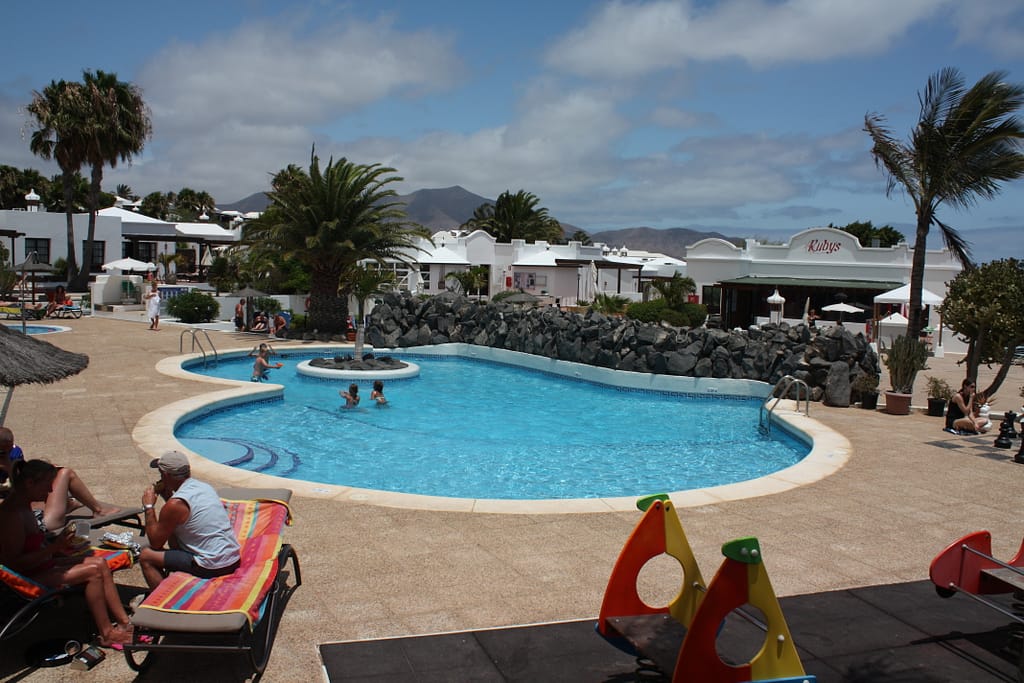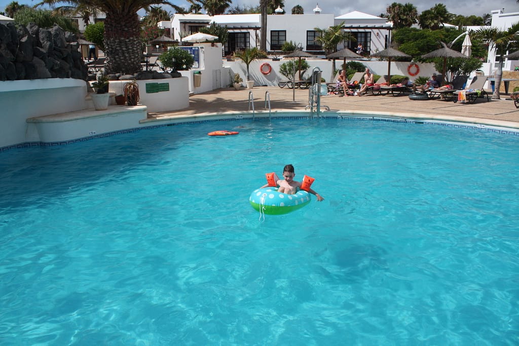 17 juli: We moeten vroeg uit bed, wat heet vroeg? Ik bedoel midden in de nacht. We staan om 02.00 uur op want ons vliegtuig vertrekt vanuit Schiphol om 05.40 uur staan we op de startbaan. Remco vindt vliegen prachtig, dus wat dat betreft zitten we wel goed. Tegen 09.00 uur naderen we Lanzarote. Eerst even onze Dacia huurauto ophalen en dan op naar ons appartementje. Bij aankomst kunnen we er nog niet in vanwege de schoonmaak. We vragen bij de receptie naar de dichtsbijzijnde supermarkt en gaan eerst inkopen doen, terwijl wordt onze bugalow in orde gemaakt. Verder deze dag niet al te veel meer gedaan want we zijn beide een aardig gesloopt van de reis. Nog wel even het zwembad verkend.