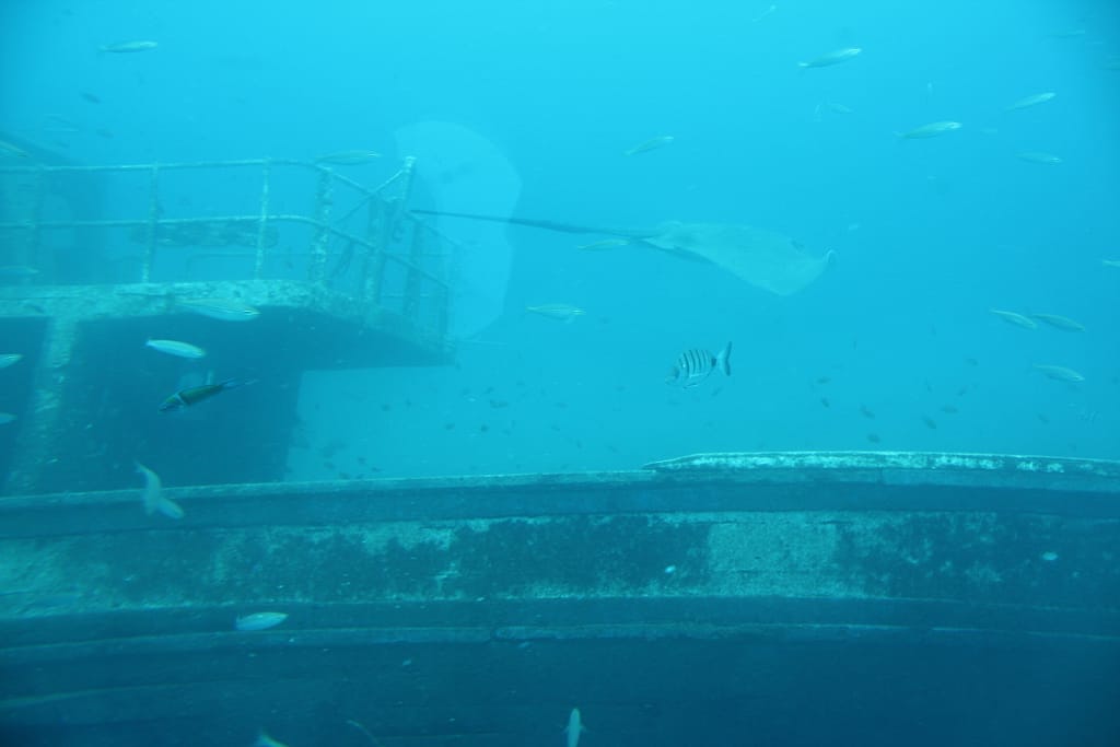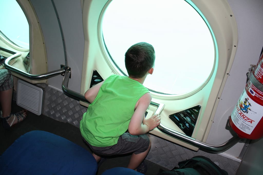 20 juli: Het mag op vakantie ’s avonds wel eens wat later worden, hetgeen wil zeggen dat het ook ’s morgens wel eens wat later wordt. Hieronder kun je zien dat Remco nog heerlijk ligt te maffen terwijl ik al aan de koffie zit. Het weer is vandaag perfect en we gaan een onderzeeboottocht maken, deze tocht hadden we gisteren al geboekt. Op naar Costa Teguise dus. Bij aankomst eerst even koffie en Remco een ijsje genuttigd. Mooi havengebied waar zo te zien de mensen met de betere beurs komen. We krijgen in het kantoor/shop van de organisatie instructies inzake veiligheid e.d. aan boord van de onderzeeer. De tocht blijkt een groot succes en Remco heft SUPER genoten oftewel: Wanneer gaan we weer Pa?? We zijn tot 35 meter dieptje geweest, prachtige vissen en roggen gezien. Enkele scheepswrakken gepasseerd, het was de meer dan de moeite waard. Aansluitend lunch genuttigd met een heerlijke fruitshake aan de boulevard. Terug naar onze bungalow via een prachtige bergweg met leuke uitzichtpunten, daarna nog even in ons eigen zwembad geplonsd.