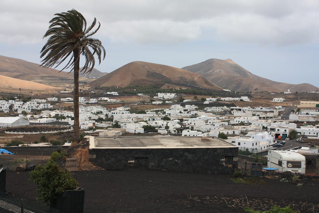 Bungalowparkje Jardin del Sol. Lanzarote ligt het meest noordelijk en oostelijk van de eilanden van de Canarische Eilanden, een archipel in de Atlantische Oceaan, circa 130 kilometer voor de noordwestkust van Afrika. Het behoort toe aan Spanje. Lanzarote is een vulkanisch eiland, dat meer dan vijftien miljoen jaar geleden is ontstaan. Het is vanwege de ligging de afgelopen eeuwen vaak het toneel geweest van strijd. Lanzarote is, inclusief de tot Lanzarote behorende kleinere eilanden La Graciosa, Alegranza en Montaña Clara, 846 km² groot. De enige luchthaven op het eiland bevindt zich bij de hoofdstad Arrecife. Omdat het het oudste eiland van de Canarische eilanden is, zijn de vulkanen verweerd van “bergen” tot “heuvels”. Gebergte zorgt vaak voor regen: op Lanzarote regent het niet vaak. Sinds men de temperatuurmeting bij houdt is de laagst gemeten temperatuur ooit +6ºC. Circa 40 dagen per jaar is er sprake van een Kalima: een sterke wind vanaf de Sahara. Dit resulteert in hoge temperaturen en veel fijn zand in de lucht. Tussen 1730 en 1736 en in 1824 heeft een reeks vulkaanuitbarstingen plaatsgevonden waarbij elf dorpen verzwolgen zijn. Een groot deel van het eiland is bedekt met lava en ziet eruit als een maanlandschap omdat er bijna geen begroeiing is. Het eiland wordt vaak geteisterd door de passaat, een wind die overwegend uit het noorden komt. Het eiland ligt ten noorden van Fuerteventura, hetgeen Spaans is voor sterke wind. Deze conclusie wordt in twijfel getrokken omdat het woord Fuerteventura niet letterlijk ‘sterke wind’ betekent, maar ‘zwaar avontuur’, refererend aan een verbannen gelovige die, wegens gebrek aan de primaire levensbehoeften, een zwaar bestaan had. Doordat de bodem van Lanzarote weinig water vasthoudt, is landbouw op het eiland erg lastig. De bewoners van Lanzarote bouwen daarom muurtjes om de gewassen heen die zowel de wind tegenhouden als het vocht opvangen.