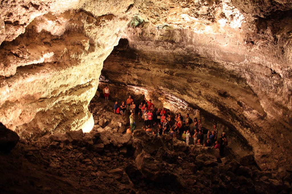 Halverwege de middag waren we beide wel klaar met het gezwem en besloten te gaan. We waren nu wel erg dicht bij de Lavagrotten en een prachtig uitzichtpunt. Ik liet Remco beslissen of we daar nog naar toe zouden gaan, Remco wilde dit graag vandaag nog doen. Leuk maar achteraf gezien bleek het allemaal toch een beetje te laat te worden, gelukkig is het vakantie. Lavagrotten waren mooi om te zien, ook hier weer een forse entreeprijs maar voor Remco gratis. Foto’s zijn dezelfde!!?? Met en zonder flitser. Met flitser wordt de spiegeling weggehaald. Zonder flitser een prachtig beeld en wekt de indruk dat je in een groot gat stapt. Mooi om te zien!