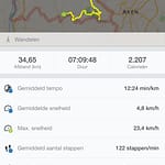 Het werd donker. Het laatste stuk toch in de regen en hagel doorgebracht. In een uur kun je aardig nat worden dus toch de regenjassen de rugzak uit. Nat en modderig in de Limburgse (klei)bergen. Etappe 1 is gerealiseerd, d’n douche in…… We slapen in Hotel Berg en DalĀ in Slenaken. De eerste 32,35 km staan op de teller. Slenaken een goede stop voor je eerste overnachting.