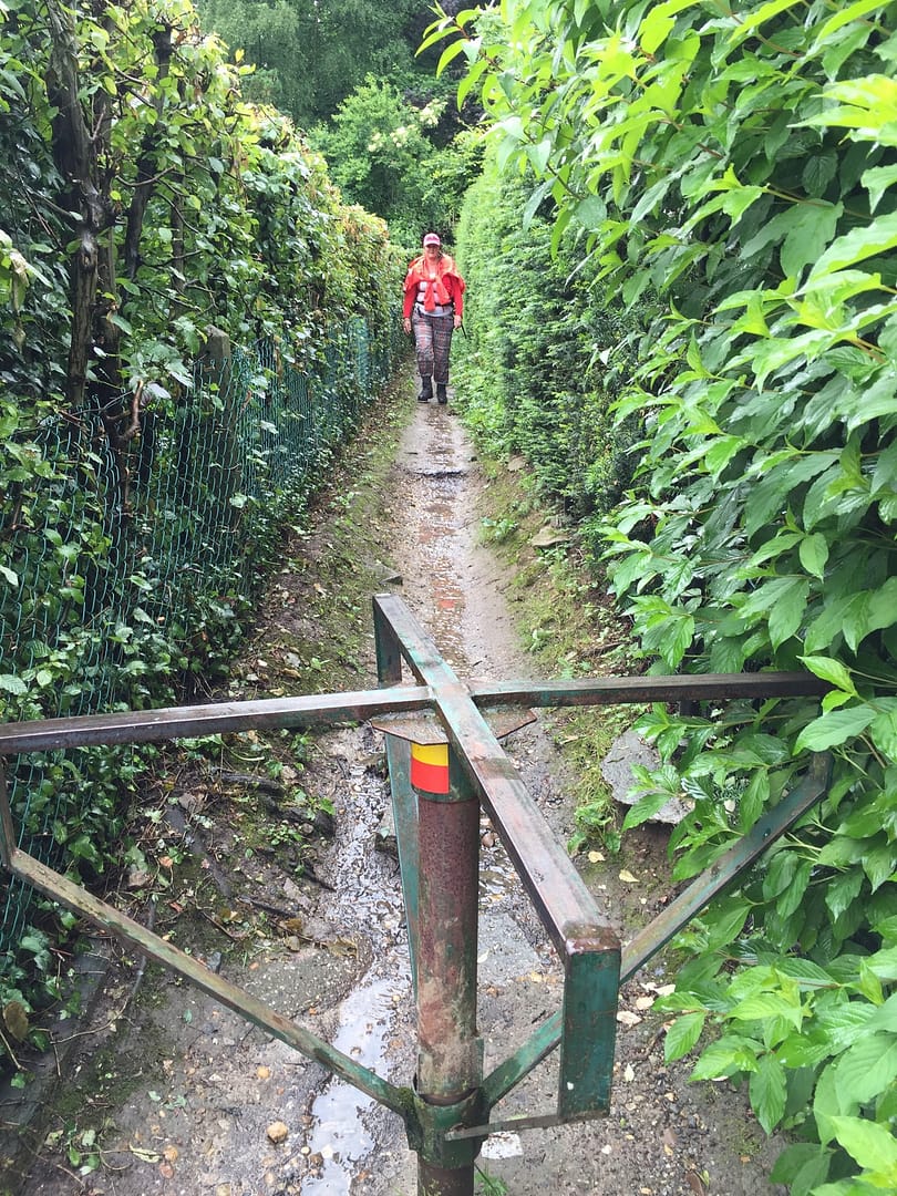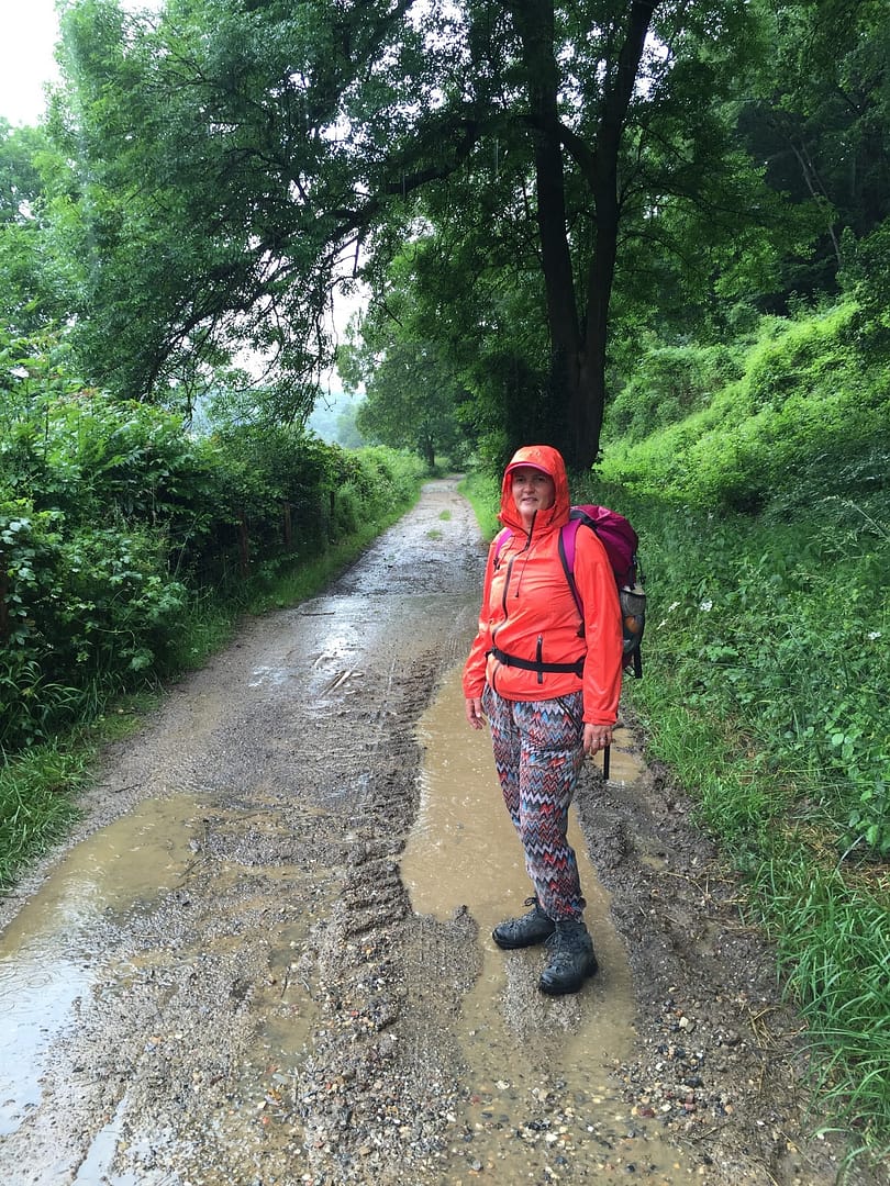 Door de regenval erg veel modder en dus slippery. Vandaag erg veel bosgebied, klimmen en dalen. Erg veel regen, zeker een keer of zes de regenkleding aan moeten doen. Maar goed, wij zijn geen watjes en maken deze tocht compleet al gaat het zeker niet altijd makkelijk. Wildlife (slakken) in Limburg en soms wandelen met hindernissen.