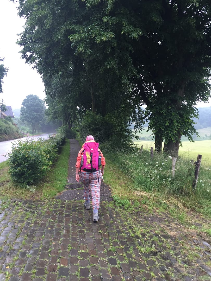 12 juni 2016: Goedemorgen Slenaken…… Na het ontbijt op naar Gulpen, tis 8 km maar wij gaan er toch echt ruim 30 van maken. We starten met regen, oftewel vertrek in regenkleding. De beentjes nog wat stram, maar na een uurtje loopt alles weer redelijk soepel.