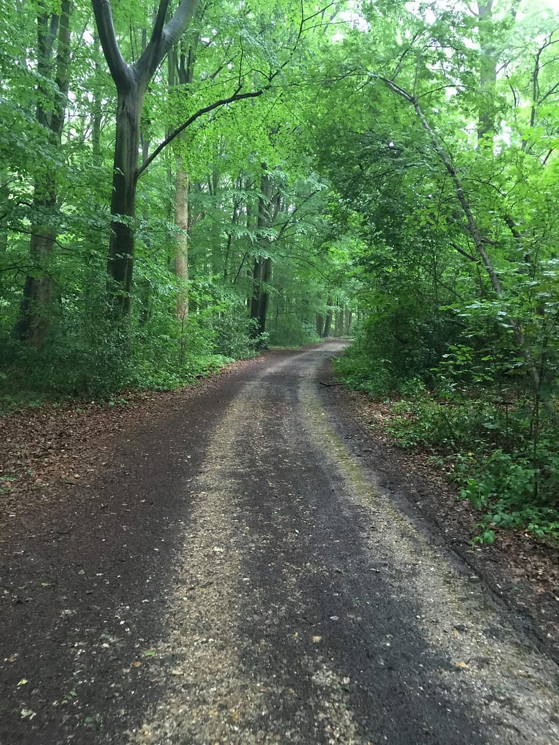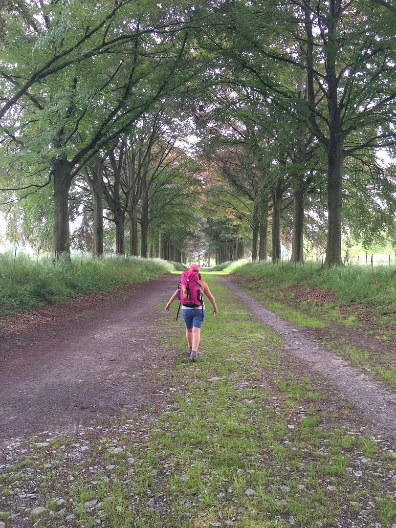 We lunchen in Eijsden, de eerste 13 km staan op de teller. Nog 77 te gaan…… Na de lunch door het rode beukenpad in Eijsden.