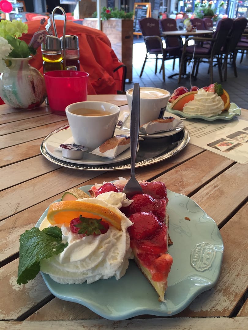 En toen was het lunchtijd! We eten bij Buitenlust aan de Camerig. En ja, na een stevige regenbui, ook nog Limburgse Vlaai in Vaals. Verdiend!