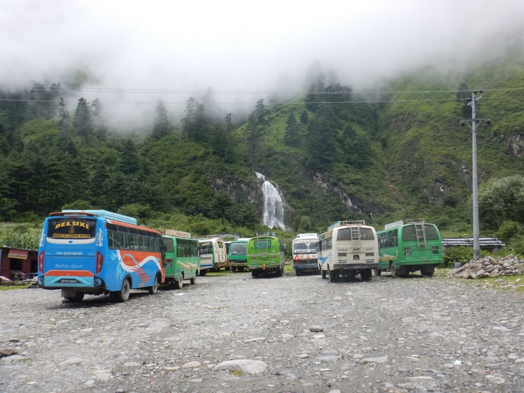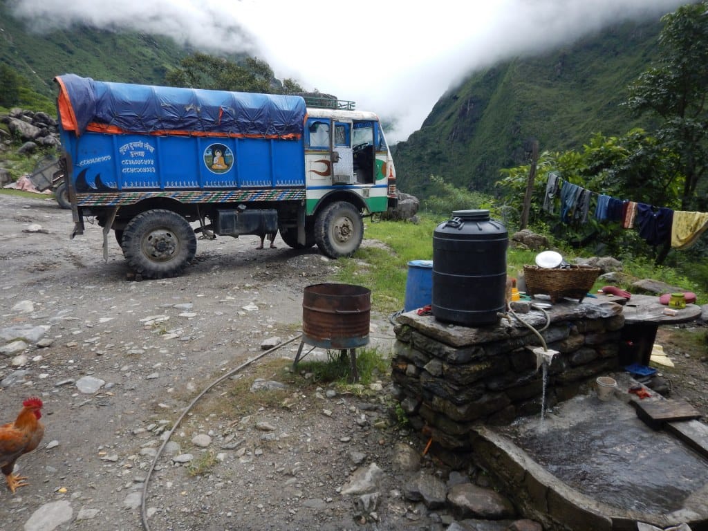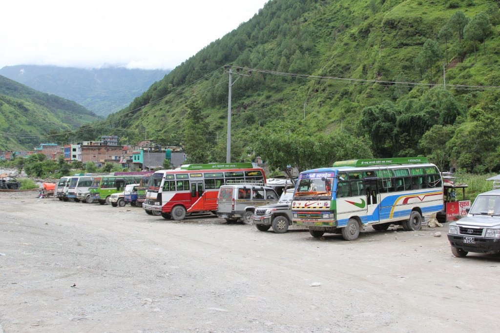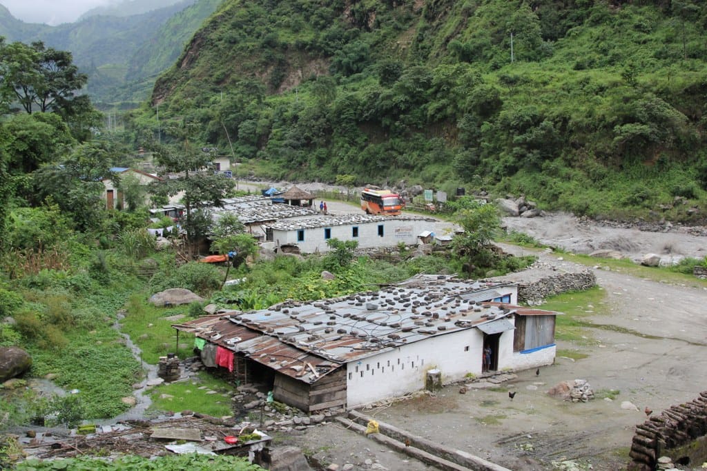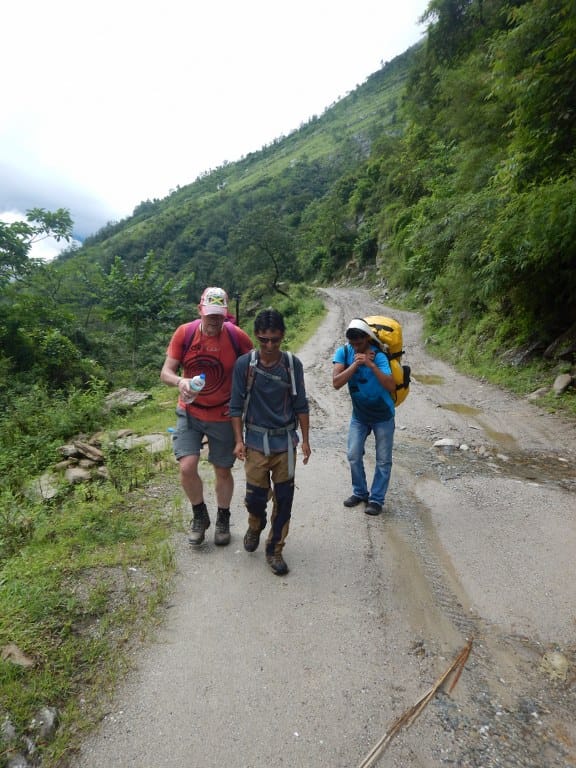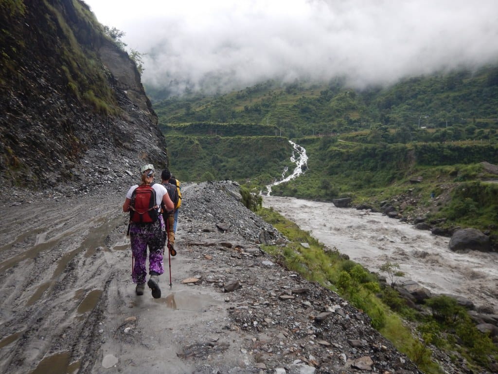 We vervolgen de weg tot een eindje voor Samer, daar moeten we er uit en een eindje (+/- 30 min) lopen. Landslides, dus wandelen en aan de andere zijde weer met een Jeep verder, deze staat al netjes klaar voor ons.