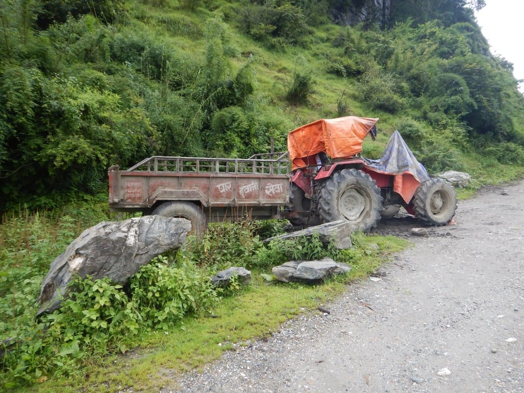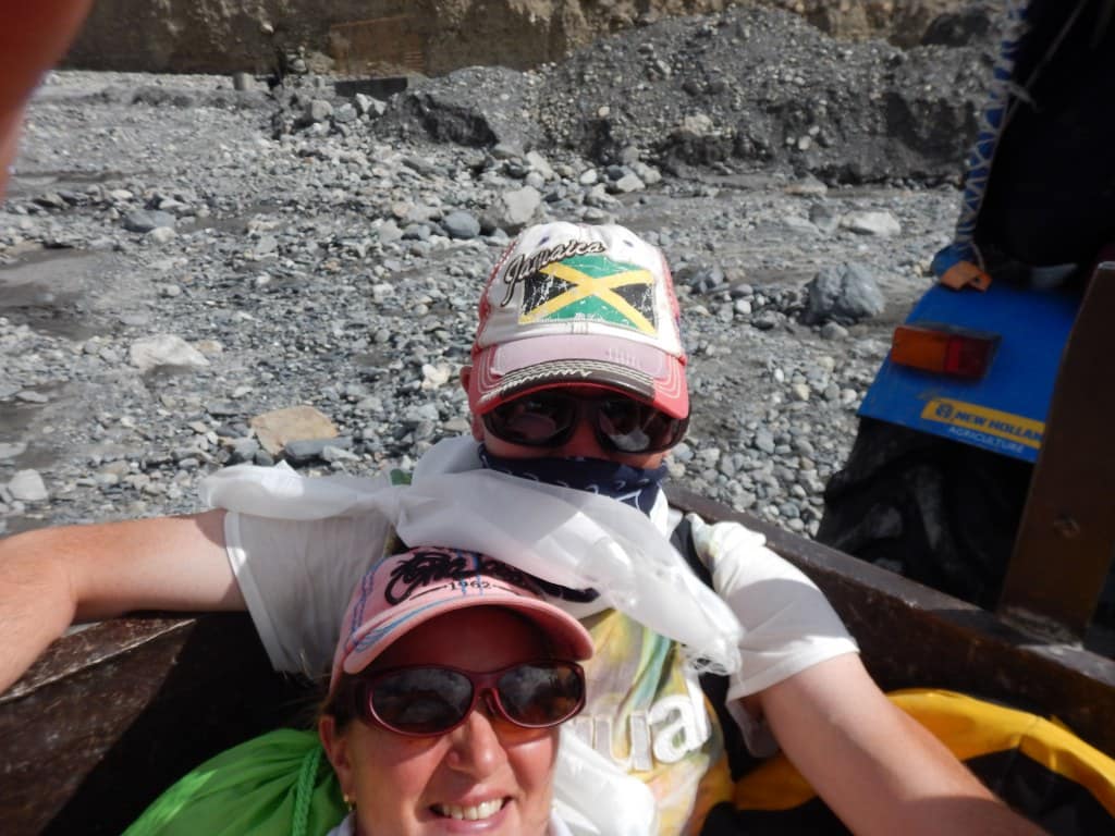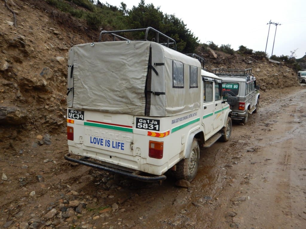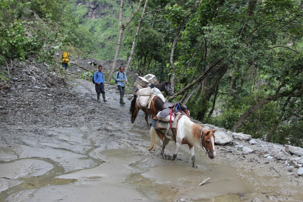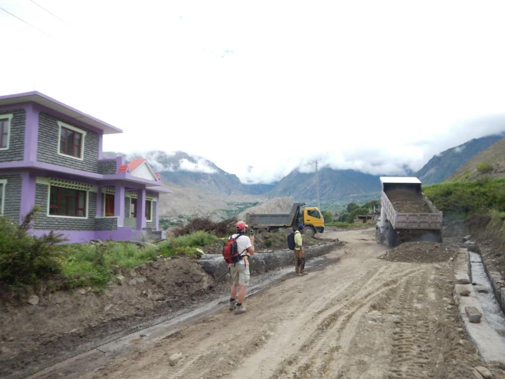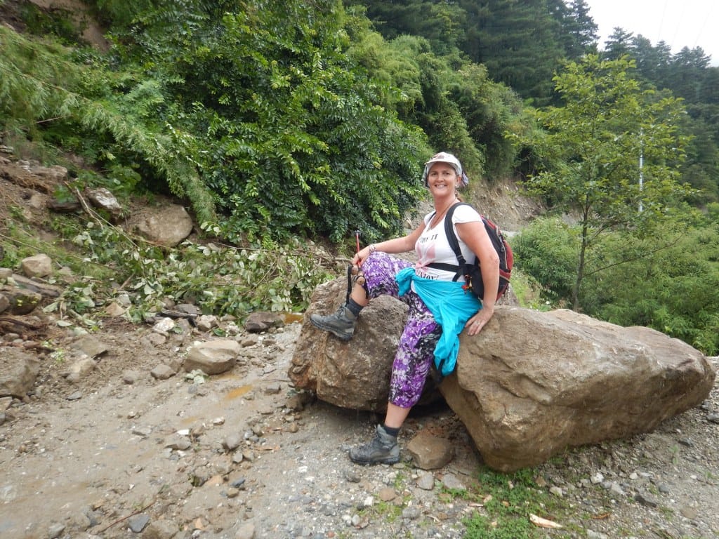 We vervolgen de weg tot een eindje voor Samer, daar moeten we er uit en een eindje (+/- 30 min) lopen. Landslides, dus wandelen en aan de andere zijde weer met een Jeep verder, deze staat al netjes klaar voor ons.