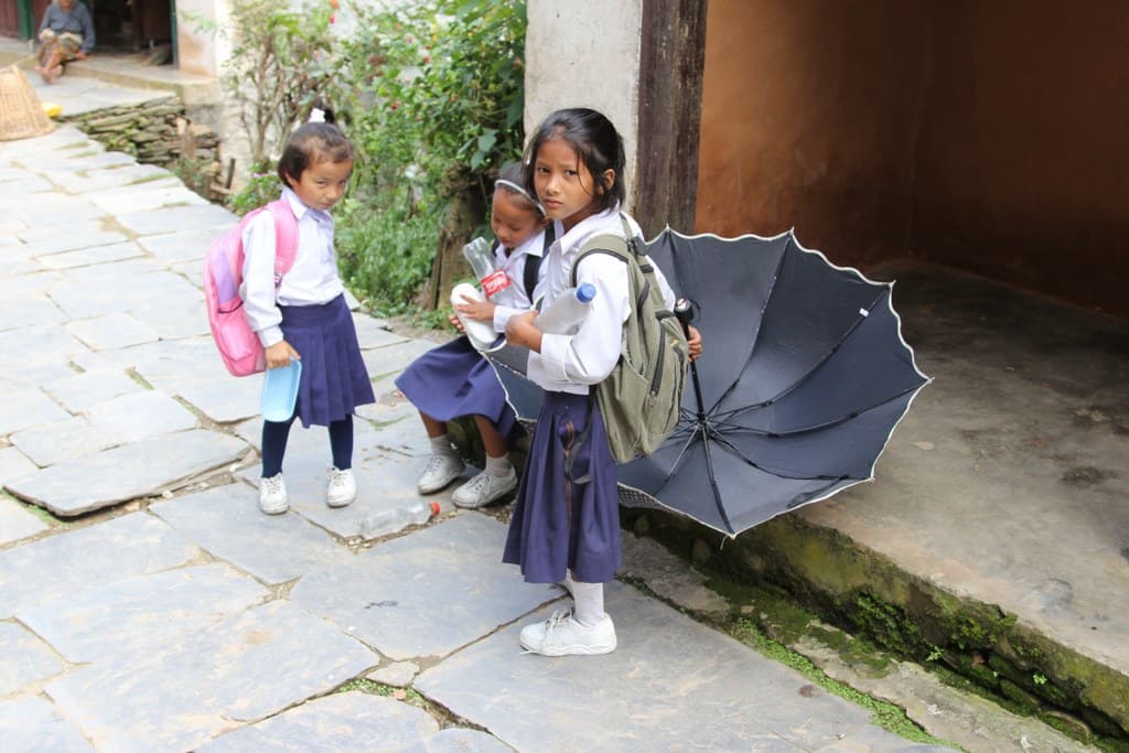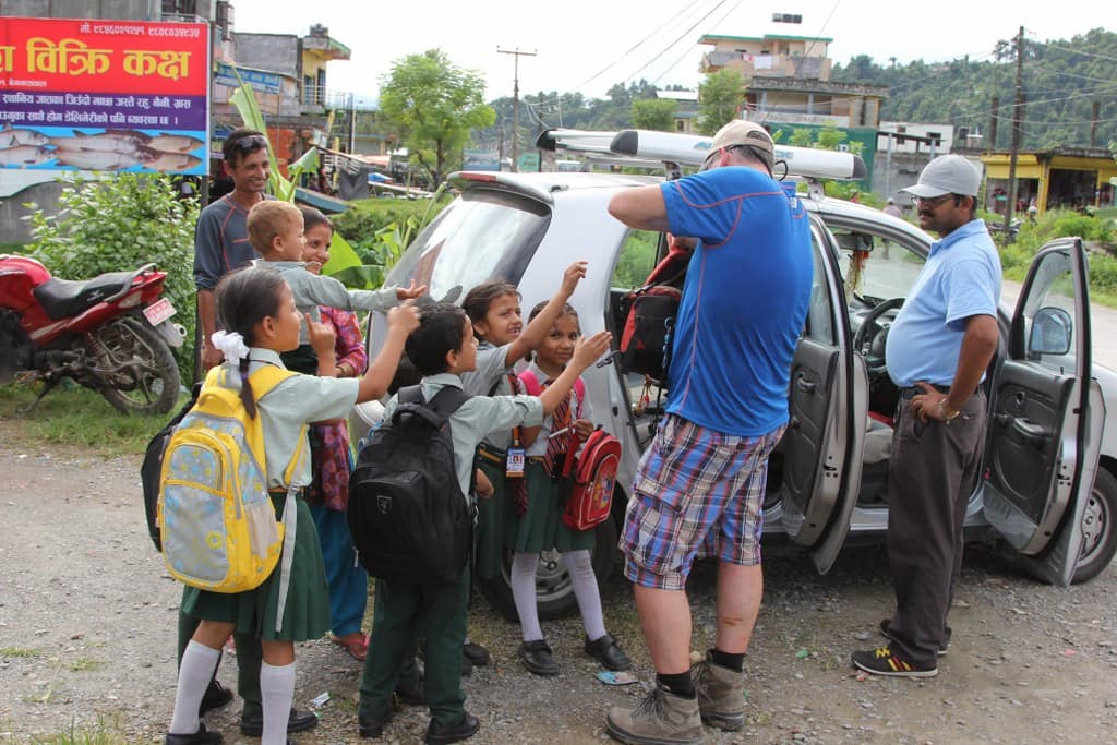 Onderweg bezoeken we een koffiefarm. The only place where you can drink the real cup of coffee. Come as a guest, Go as a friend. We nemen wat bonen mee naar NL, een stukje Nepal in Bergeijk/Eersel. Aan de andere kant van de heuvel aangekomen, staat onze taxi incl. chauffeur al op ons te wachten. We nemen een tweetal Mango’s mee uit het “shopping center” en delen nog wat pennen uit bij de kinderen, helaas komen we er eentje te kort…… Huilen geblazen dus.