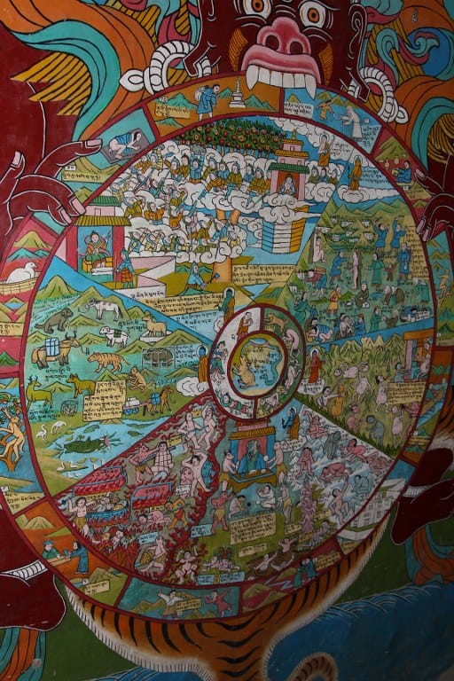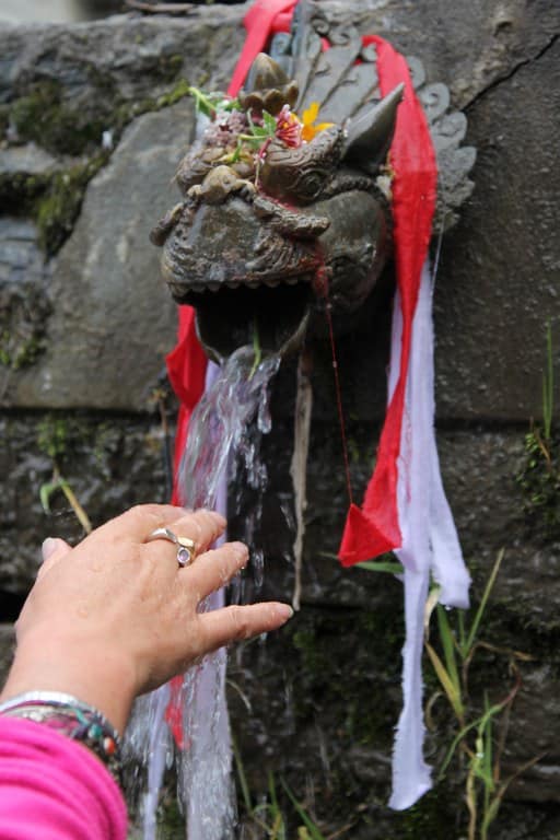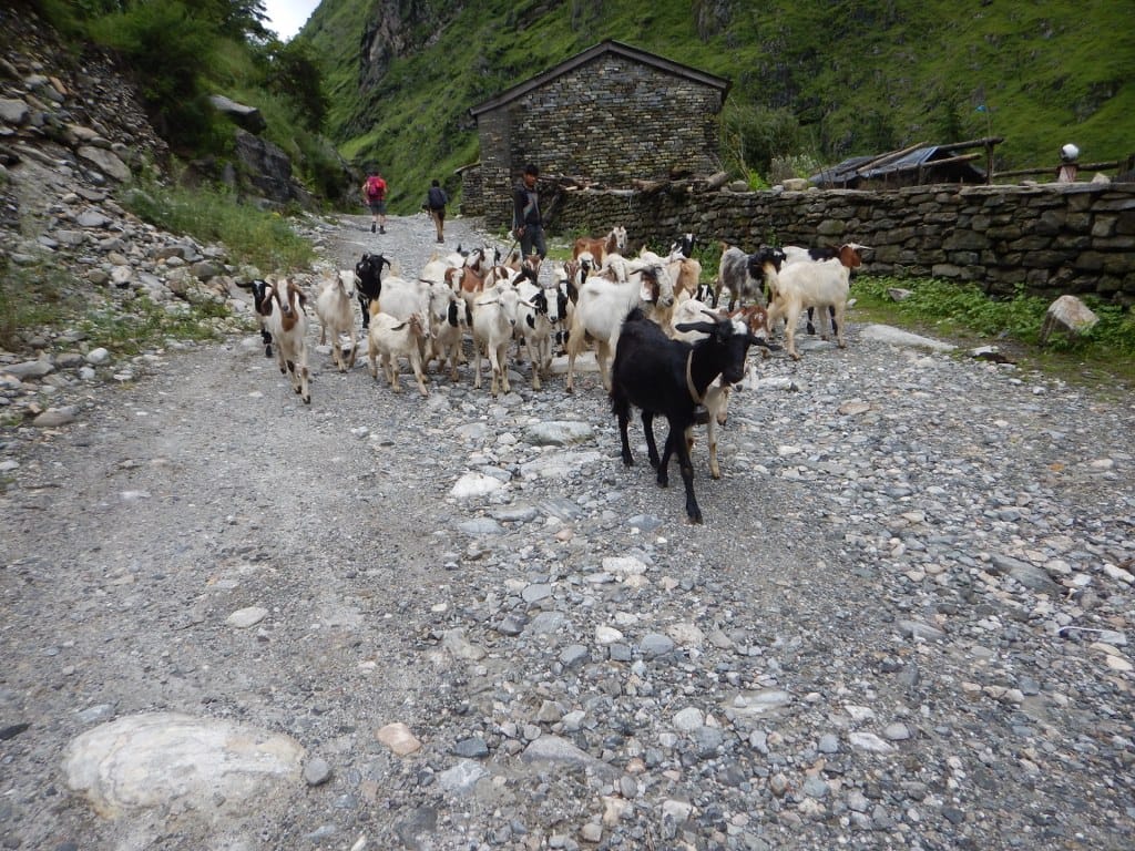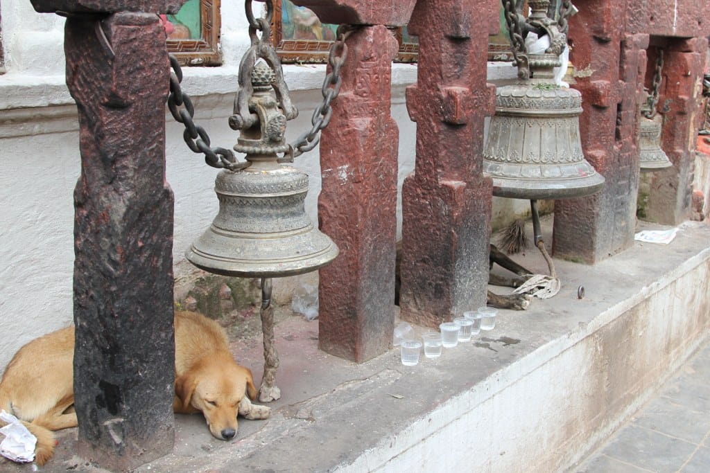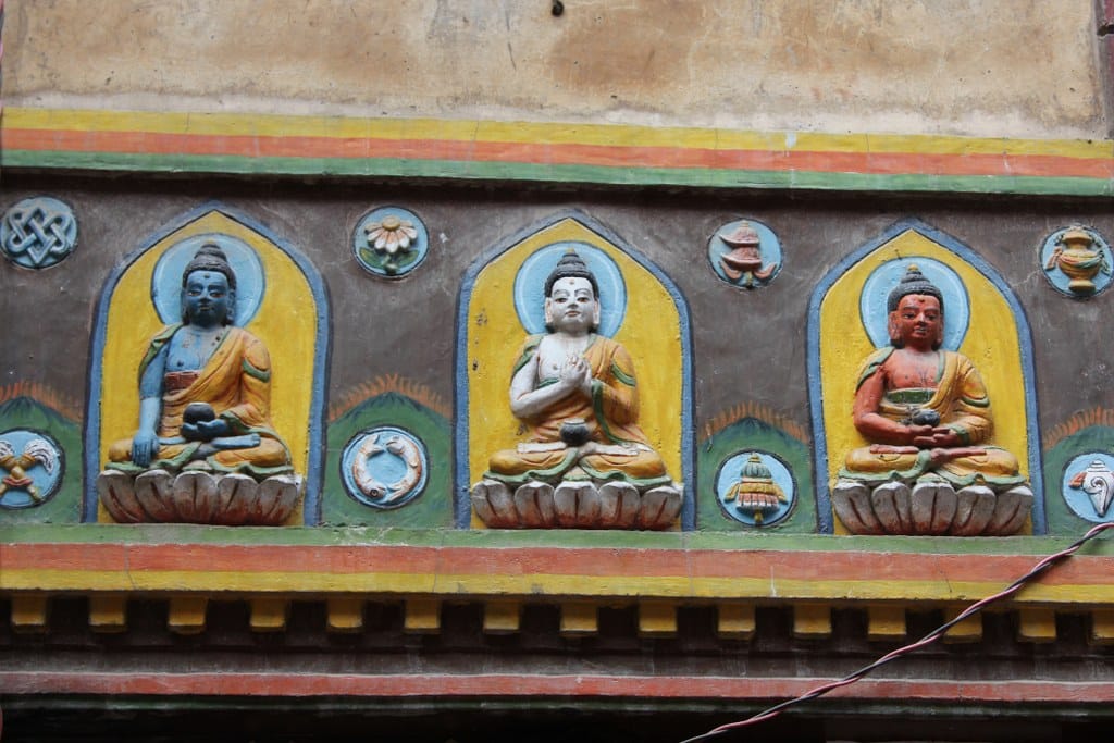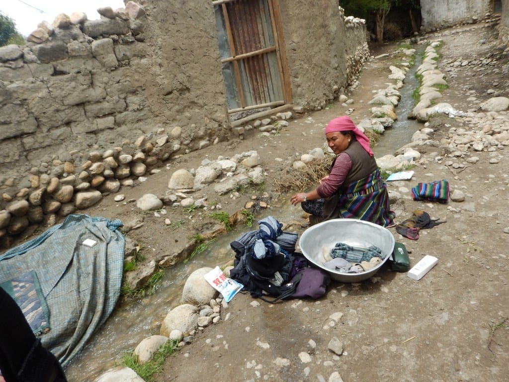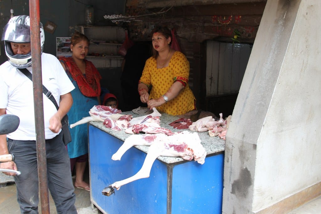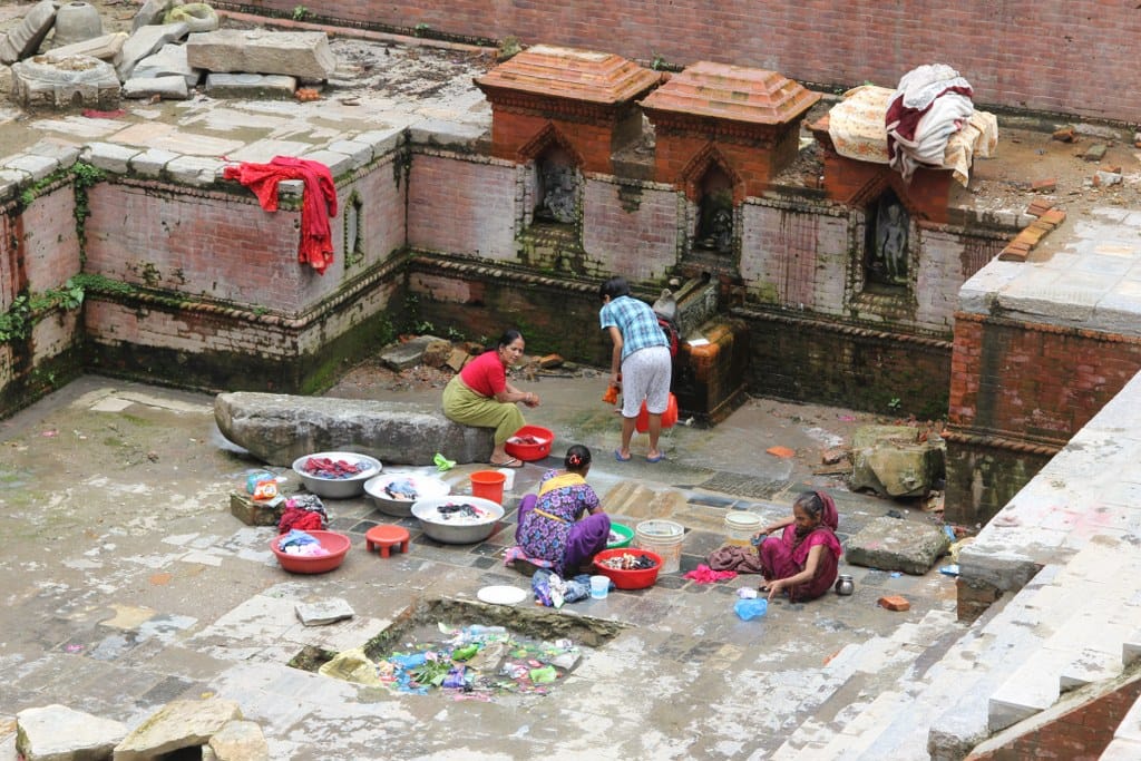 Erg bijzonder, toen we terug kwamen bij ons hotel lag de Yak schedel voor de deur, waar het bloed nog uitliep. Toen we naar de overkant liepen om te eten, waren ze de Yak schedel aan het ontharen. In het boeddhisme worden dieren geofferd maar niet in de tempel, in het Hindoeïsme doen ze dat wel. Tegenover ons hotel is een wasplaats, voor alles wat je maar wilt wassen. Het oude gedeelte van ons hotel is een oud klooster, een enkele monnik leeft daar nog en voorafgaand aan ons eten zien we hem de mantra zingen en bespelen. Wederom bijzonder.