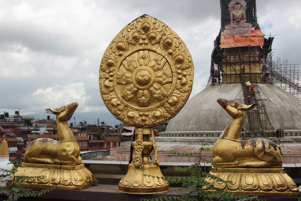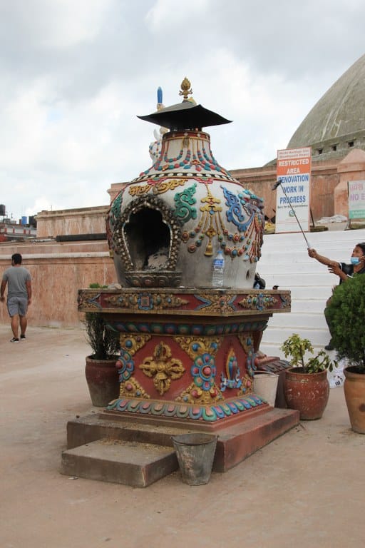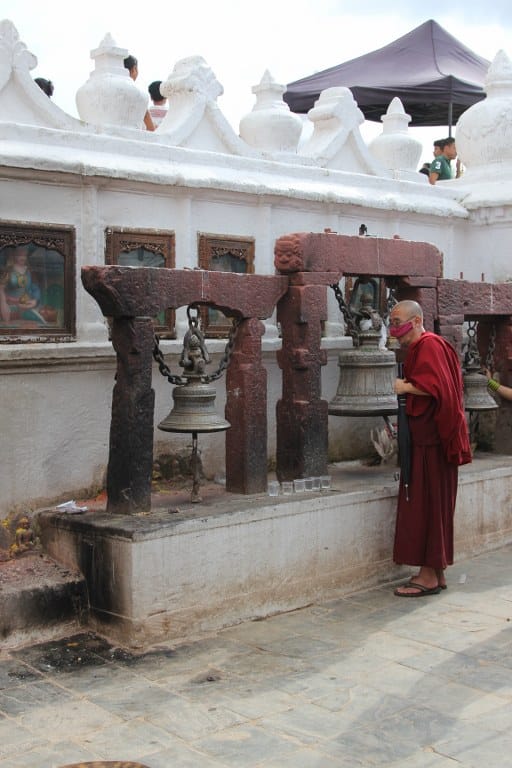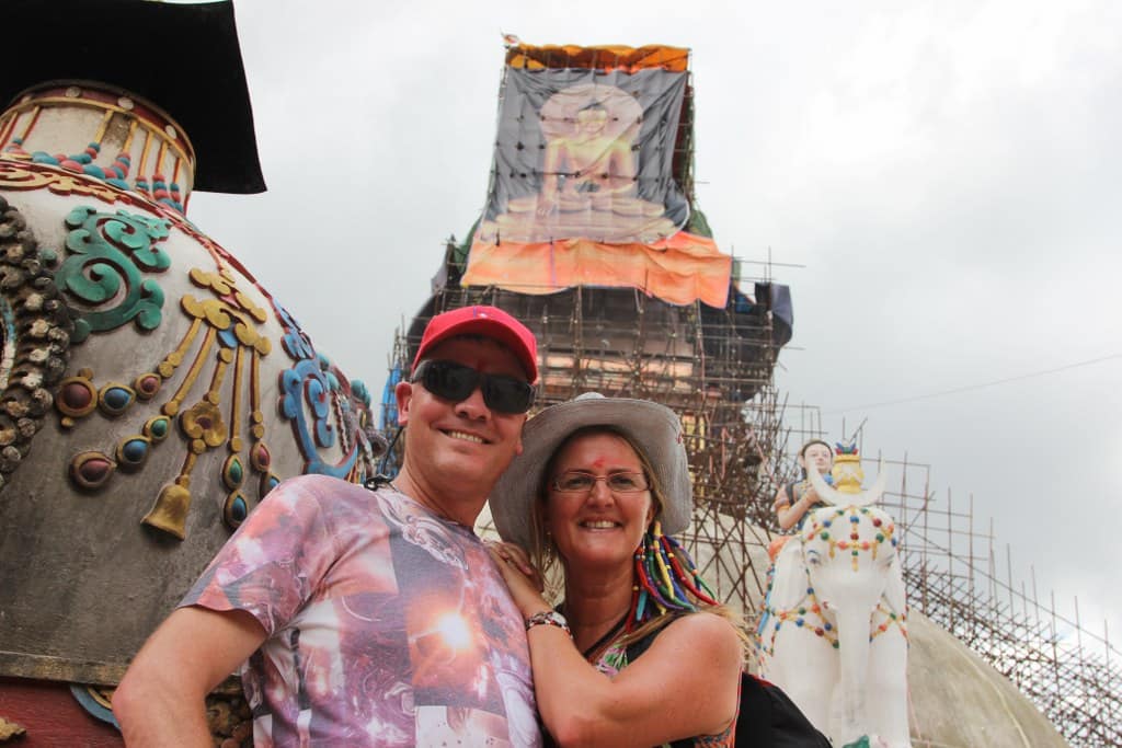 Op naar de Shree Boudhanath Stupa. Dit was ooit de grootste Stupa ter wereld maar is inmiddels ingehaald en is nu de derde grootste. Ook hier volop renovaties ivm de aardbeving van 2015. Over een paar weken zal deze Stupa, in verbeterde vorm, weer volledig zichtbaar zijn. We zien dan graag de foto’s van Maxim en Laxmi verschijnen zodra alles weer gereed is? Ook hier steken we weer een aantal kaarsjes aan.