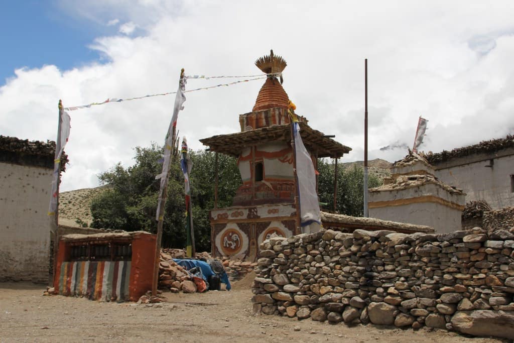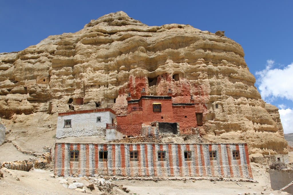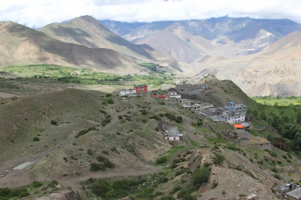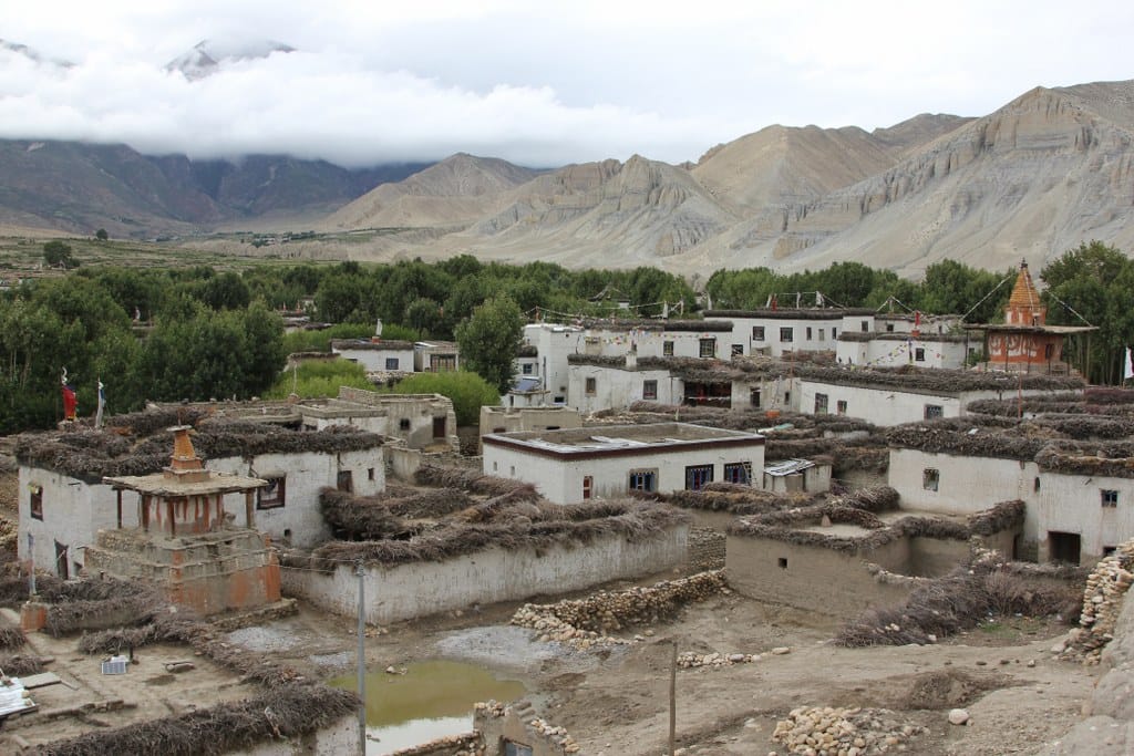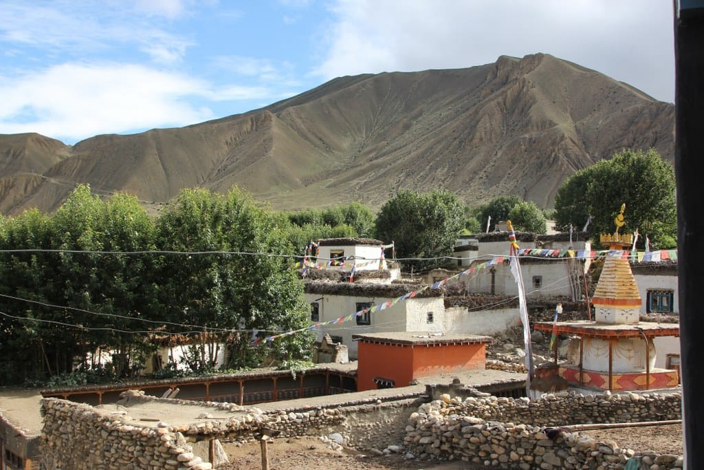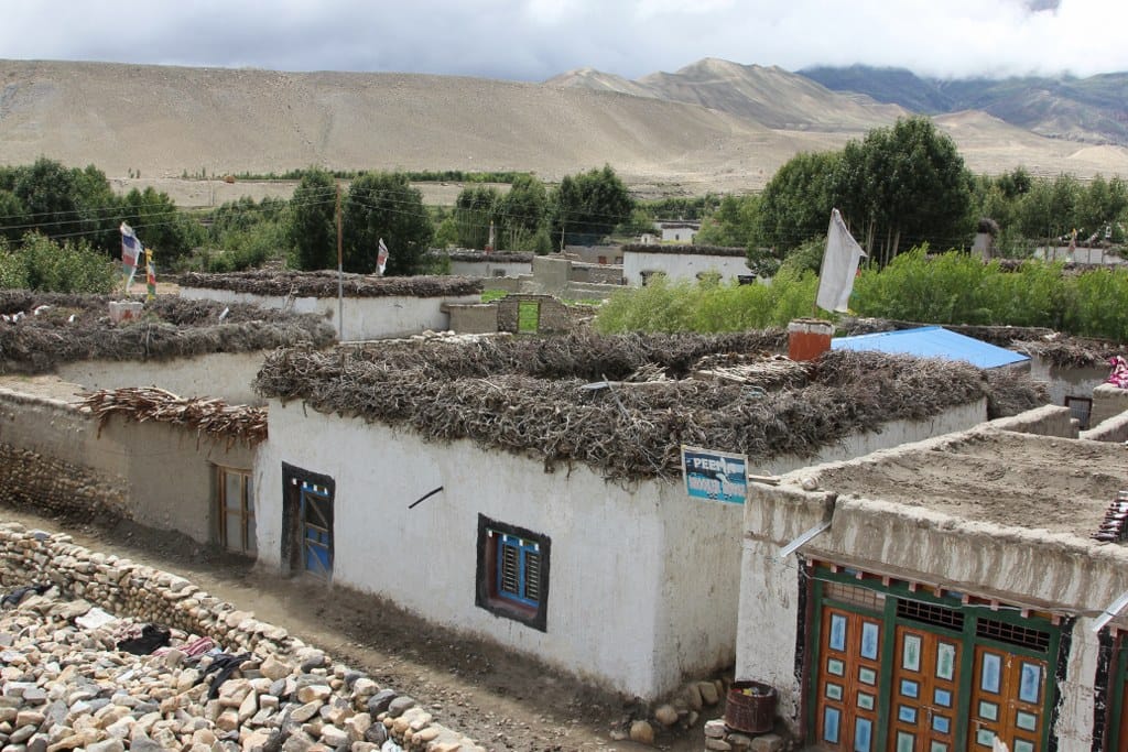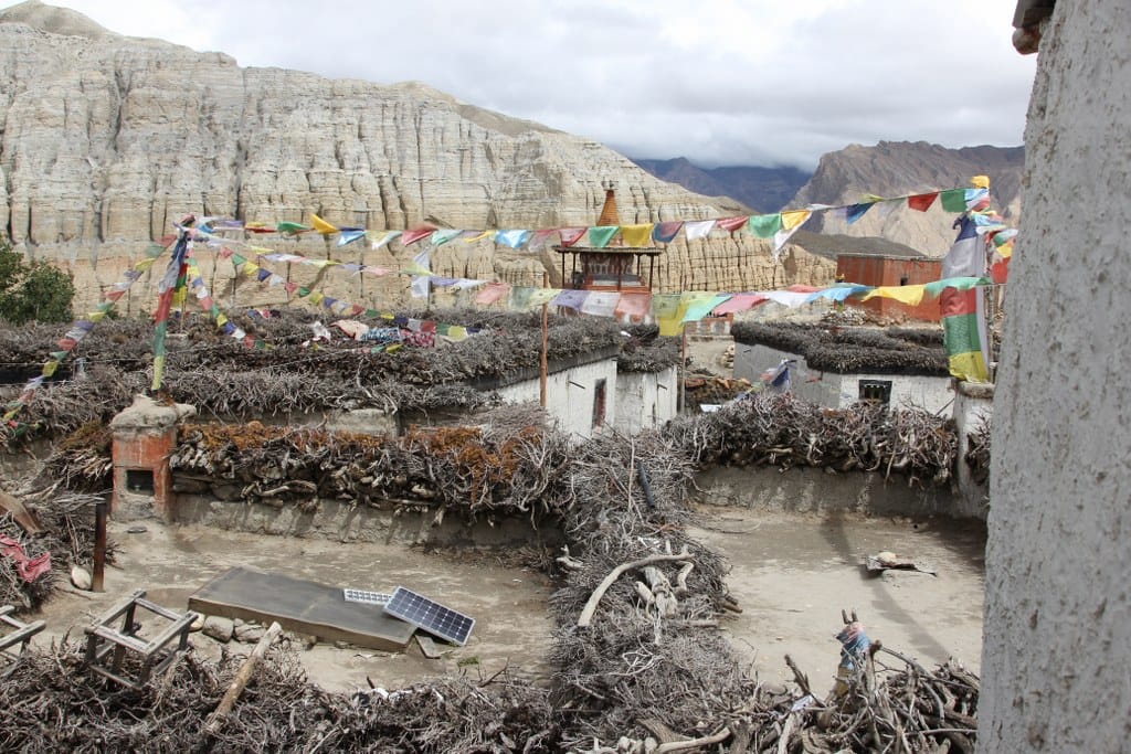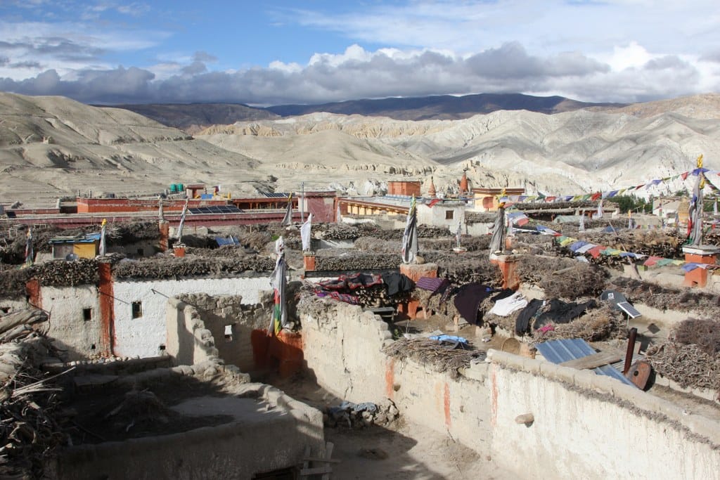 Daarna dalen we af naar Tsarang, een schitterend bergdorpje in Upper-Mustang. We lunchen hier in ons verblijf Maya’s Inn. Daarna kunnen we lekker genieten van de omgeving op het dakterras. Een wat kortere, maar toch stevige, dag in onze trekking. Een relaxte middag in het zonnetje, wat inmiddels goed doorgekomen is, tevens ook goed voor het droge van onze, nog steeds, natte kleding.