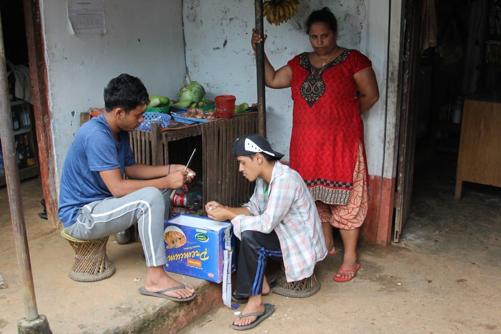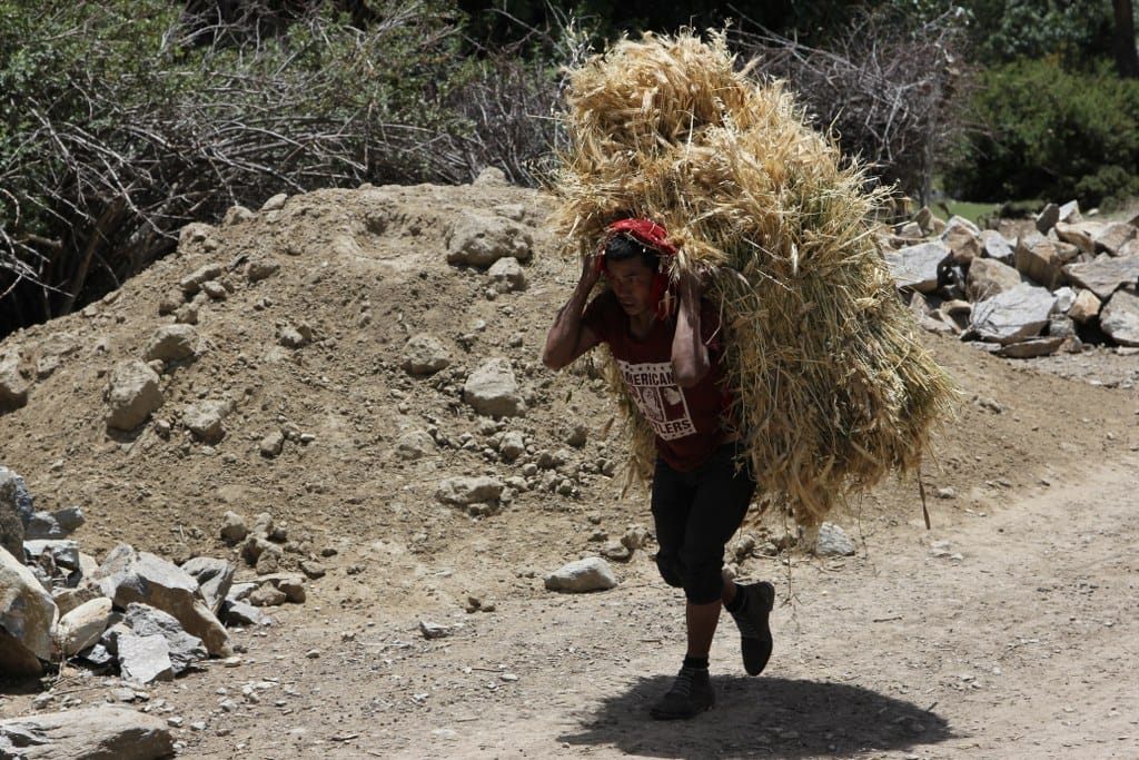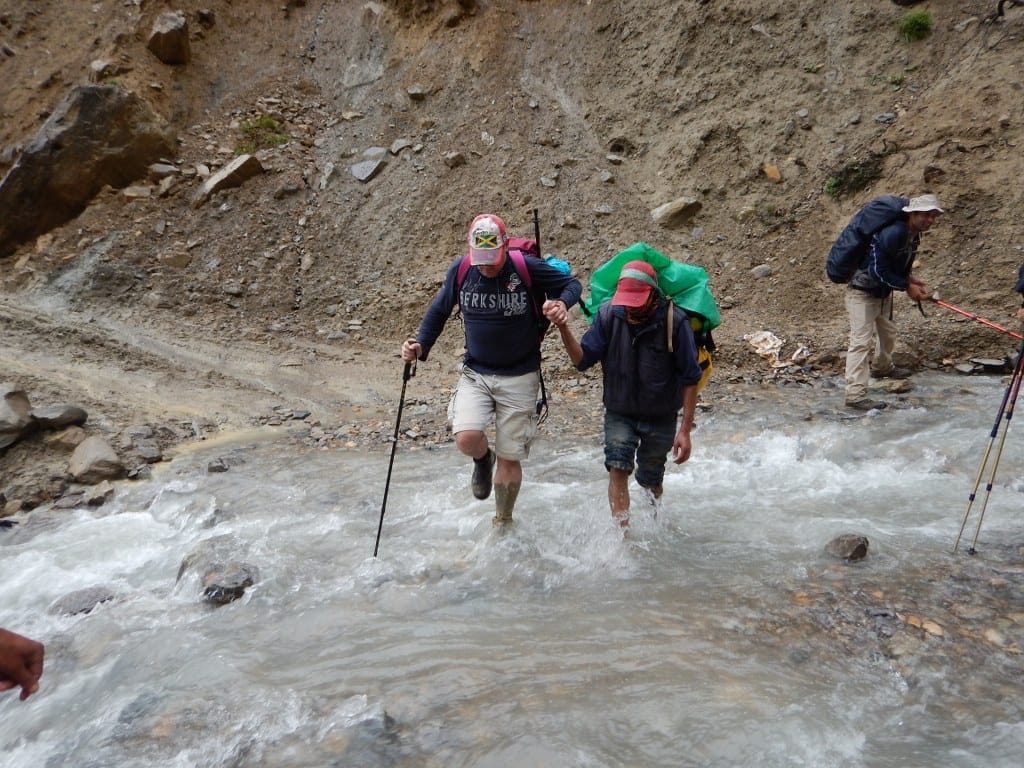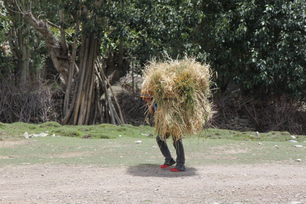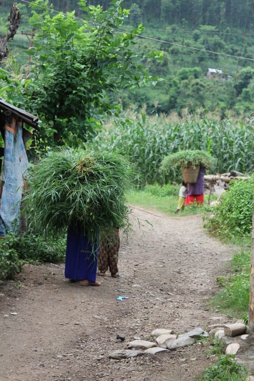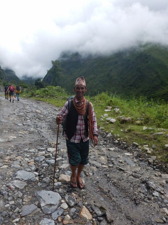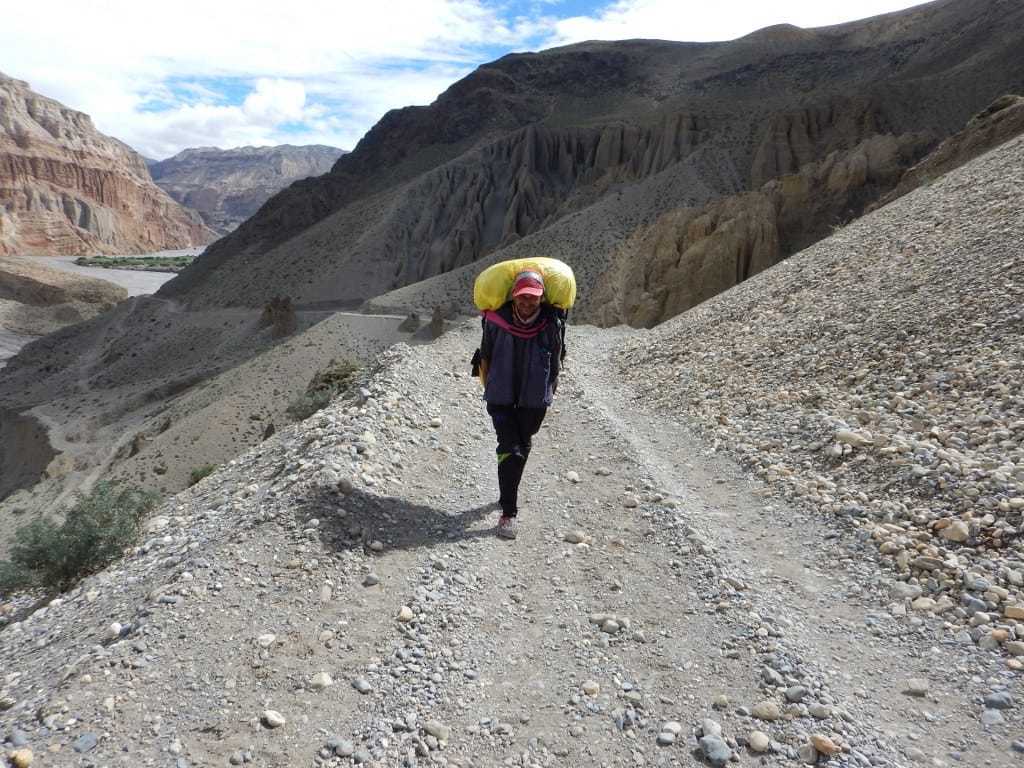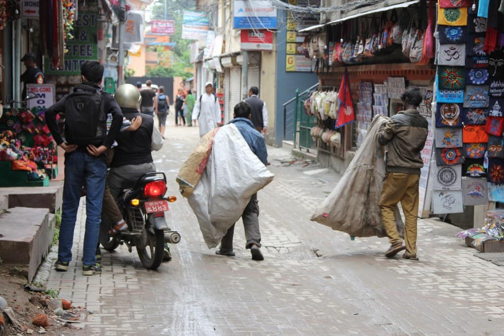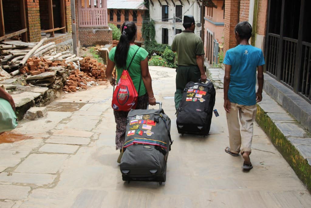 Wij hebben daarmee wel wat moeite!! Er is geen andere optie en volgens Binod geen probleem. Qua tempo schiet het nu minder op, dus besluit Binod te dragen.