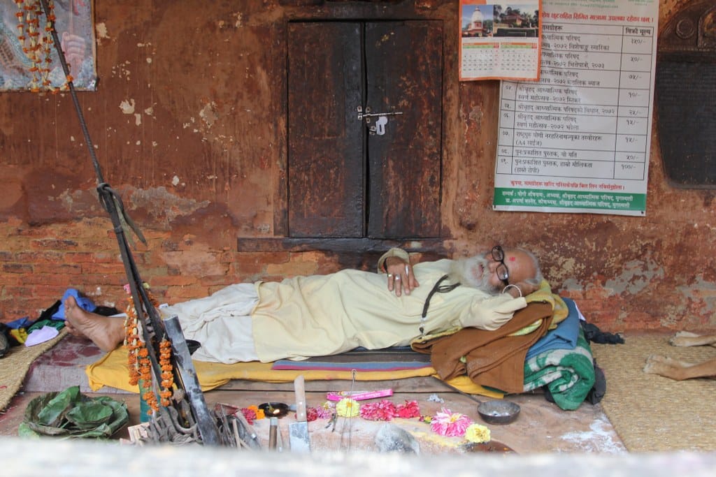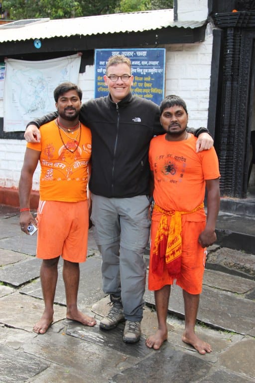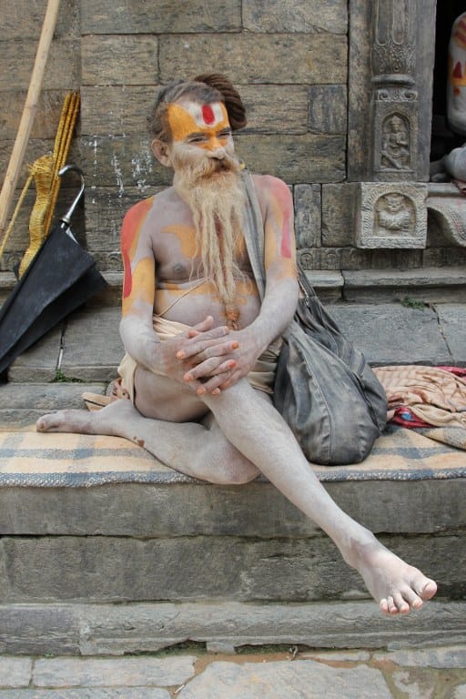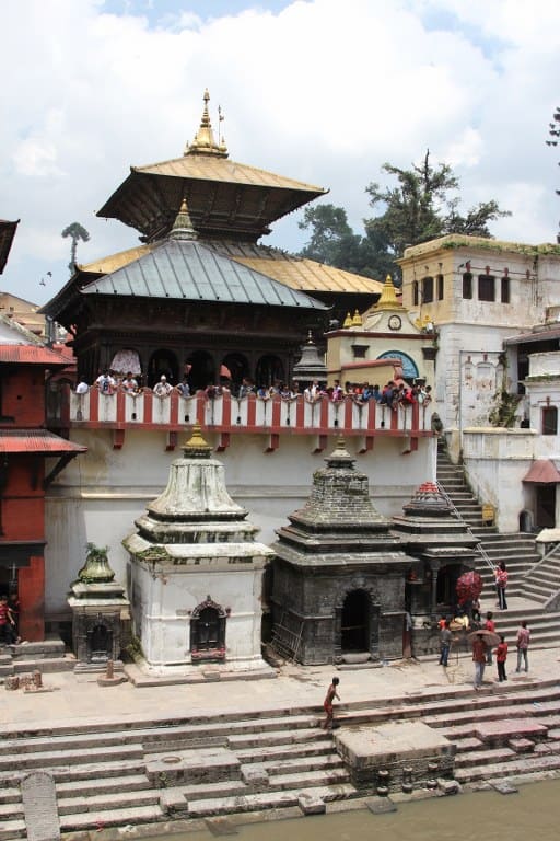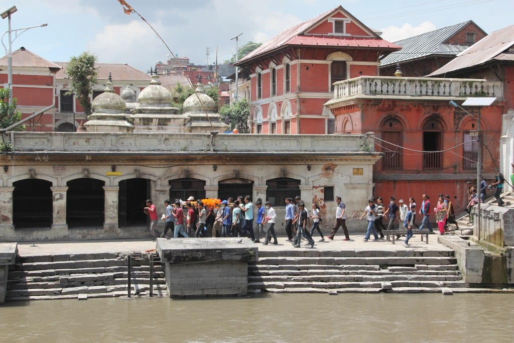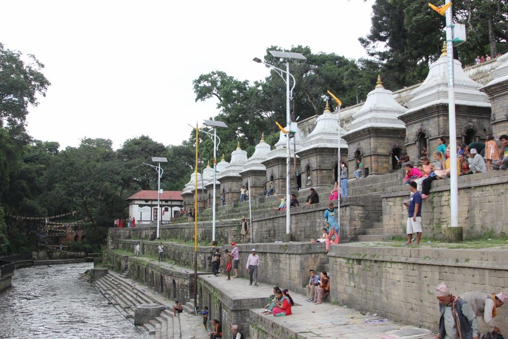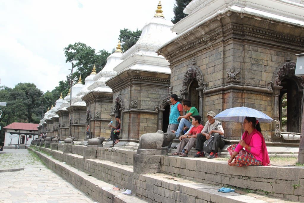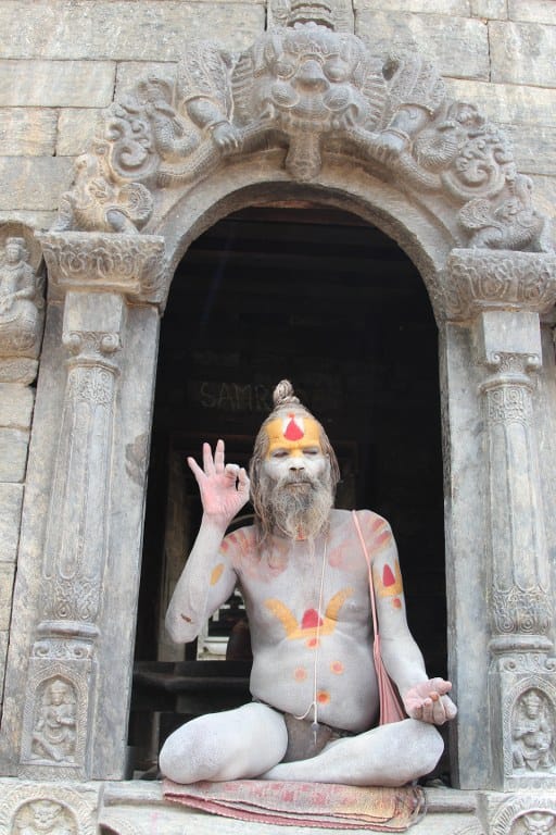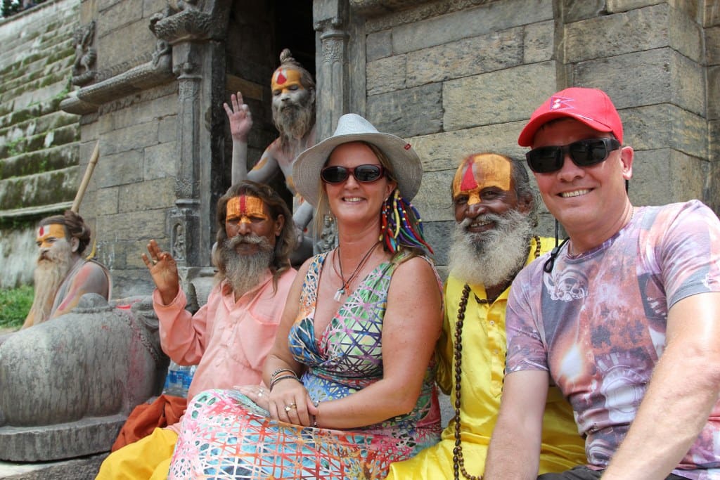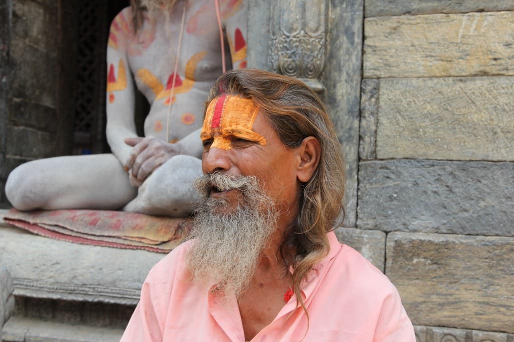Na Bhaktapur gaan we met de taxi naar de Pashupatinath Temple, dit is een crematieplaats aan de rivier. Hier vinden openbare crematies plaats, deze zijn alleen weggelegd voor mensen met voldoende inkomen. Een erg heftig ritueel! Na het overlijden worden de mensen hier binnen een paar uur gecremeerd op een houtstapel. Het eerste wat we zien is dat na de crematie de as en het overgebleven hout de rivier in wordt geveegd, familie/vrienden blijft hierbij aanwezig tot alles opgebrand is en schoongemaakt is. Aan de overzijde van de rivier is het toegestaan deze crematies bij te wonen. Maxim organiseert nog enkele foto’s met Hindoeïstische yogi’s. Hun brengen ons een zegening uit, een derde oog op ons gezicht.