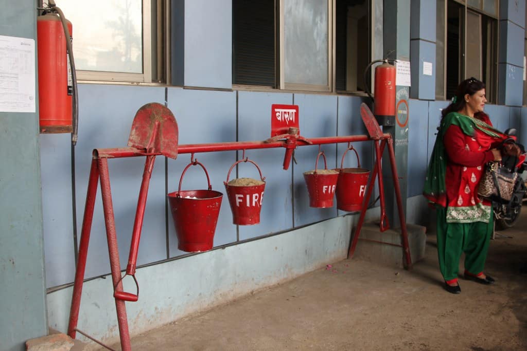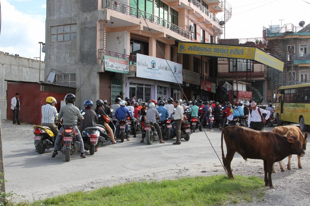 Na dit bezoek gaan op naar onze rafting plaats aan de Trishuli rivier. Eerst ff tanken………. Mocht het ooit mis gaan bij het tankstation zijn daar altijd een paar emmertjes zand!