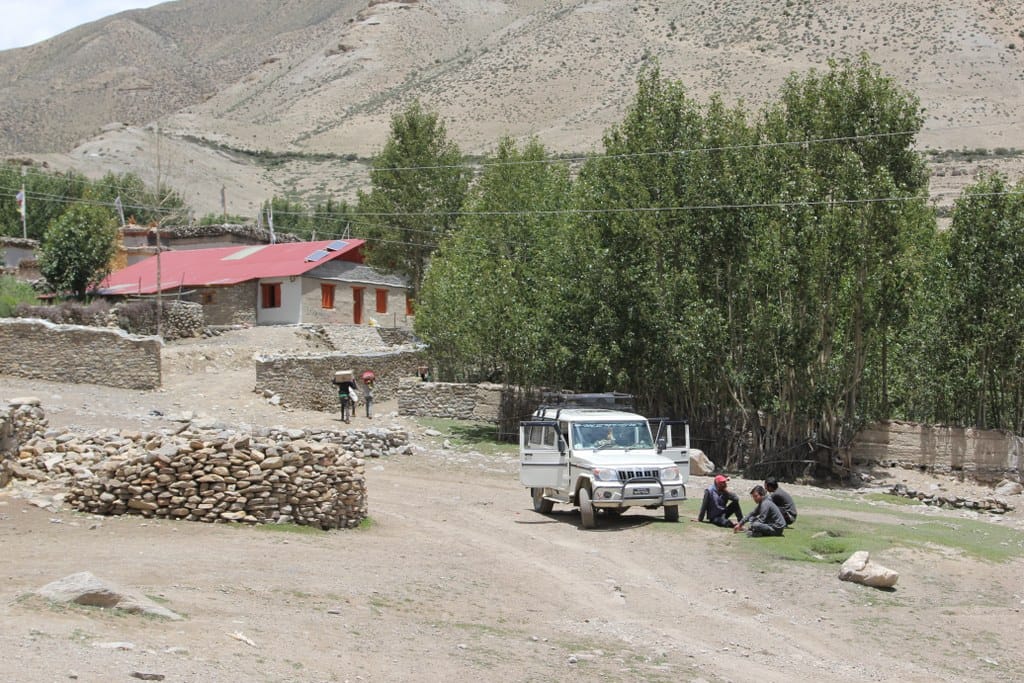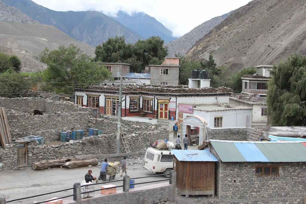 5 augustus: Goedemorgen Lo Manthang, voor de laatste keer want we zijn zo weer weg. Yes, we mogen uitslapen tot 07.30 uur vandaag, jippie wat een “feest”. Door de vertragingen met de vliegtuigen van Pokhara naar Jomsom, moeten we wat concessies doen in onze trekking. Vandaar dat we vandaag om 09.30 uur opgehaald worden met een Jeep. We gaan per Jeep en een stuk te voet naar Chhusang, dezelfde plaats Braka Guest House & Restaurant. In Tsarang kunnen we nog wat wc papier scoren, valt niet mee om dat hier te krijgen want in Nepal gebruikt dat niemand; schoonspoelen met water en that’s is. Gelukkig hebben we onze radars altijd aan staan en kunnen we, voordat onze “voorraad” op is, nog nieuwe scoren. Bounty’s er bij en we kunnen er weer tegen.