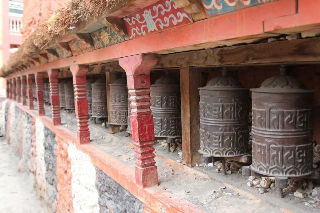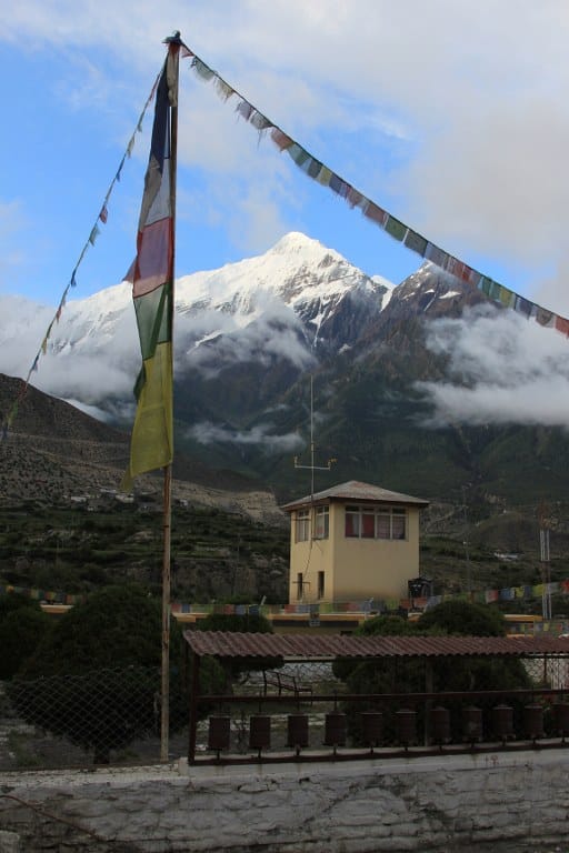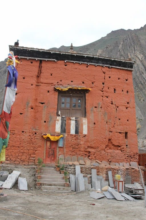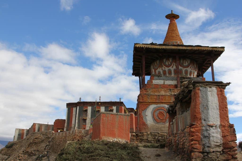 We bezoeken Jharkot, een klein bergdorpje, waar we plotseling voor een kleurrijke Monastery staan. We ontmoeten daar een vrouw uit Oostenrijk die al sinds 2008 naar Jharkot komt. Ze zou daar een eenmalig project doen maar het loopt inmiddels al acht jaar. Ze komen elk 1,5 jaar voor 3 a 4 weken naar deze Monastery toe. Goed dat mensen zich inzetten voor zulke projecten, opleiden kinderen, bouwen nieuwe schoolgebouwen, know how inbrengen enz. Ze had nu niet veel tijd en de Tibetaanse Monnik was er ook niet dus we hebben afgesproken dat we morgenvroeg terug komen. Onze slotklim naar Muktinath is pittig maar wordt beloond met een leuk “modern” plaatsje, vreemd na al die dagen van oude bergdorpjes bezoeken. We verblijven in Hotel Buddha & Himalayan Restaurant.