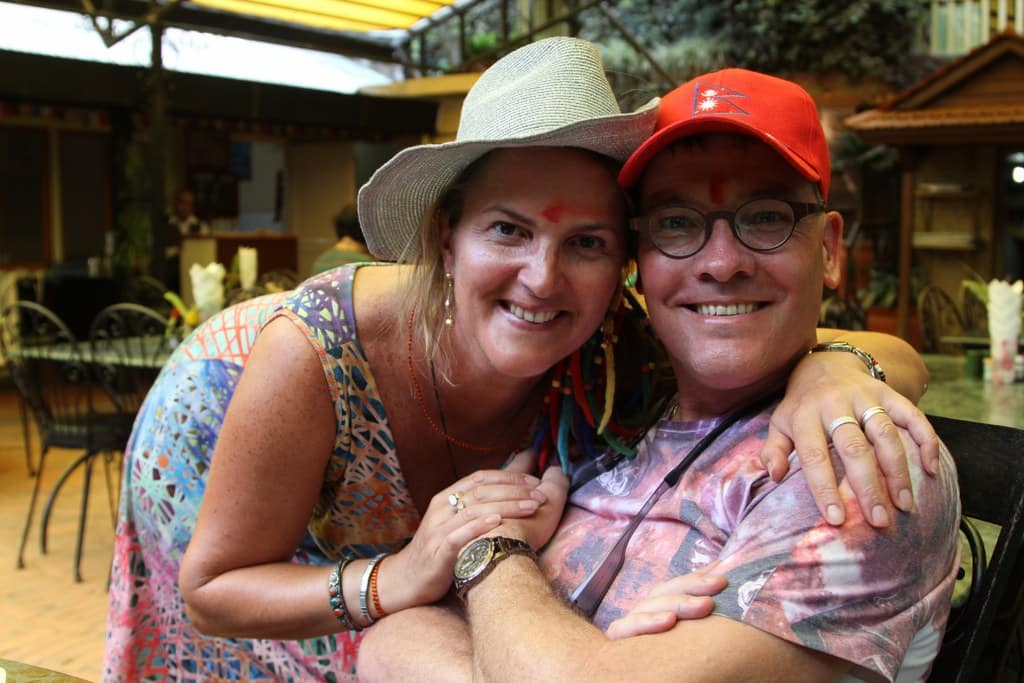 poehoe, weer de stad in. Wat een bijzondere manier van afscheid nemen, voor Nepalese begrippen normaal, voor ons erg bijzonder. Hier gaan ze anders, meer open, om met de dood dan wij gewend zijn. Op naar het volgende leven………. Ons derde oog (zegening) is hier goed zichtbaar.