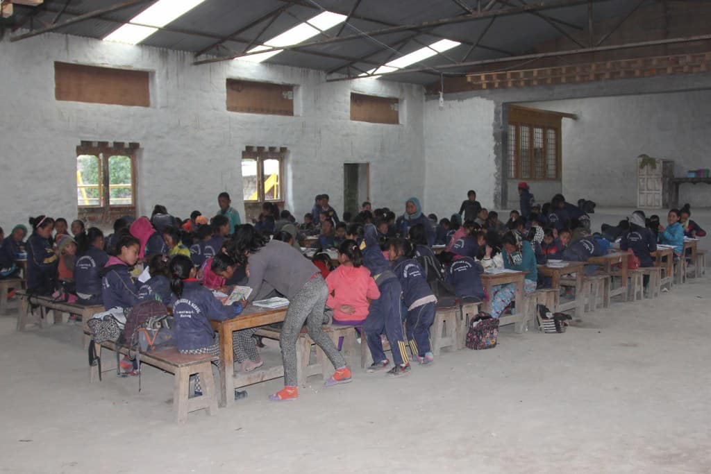 Bijna terug in ons Hotel, horen we kindergeluiden. Dit blijkt een school te zijn, we vragen of we naar binnen mogen. We worden hartelijk ontvangen en mogen ons mengen tussen de kinderen, ongeveer 120 in totaal. De leerlingen vinden het super leuk. Er zijn negen mensen staf aanwezig, en van een van deze mensen krijgen we een geweldige rondleidingen door de school, slaapzalen, dining room, keuken, speelplaats en voetbalveld. De tijd heeft hier erg lang stil gestaan. Alle klassen zaten nu bij elkaar omdat er naschoolse studieuurtjes waren. De kinderen blijven op school van maandag t/m vrijdag en vele langer als de weg naar huis onbereikbaar is door het weer en/of te ver is. We krijgen thee aangeboden, ook hier weer super gastvrij. Dit maakt echt wel indruk dus we besluiten een leuke donatie te doen. Dit werd zeer gewaardeerd.