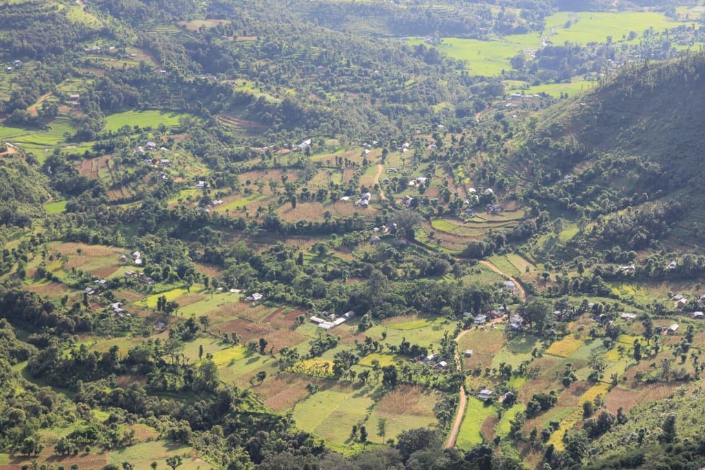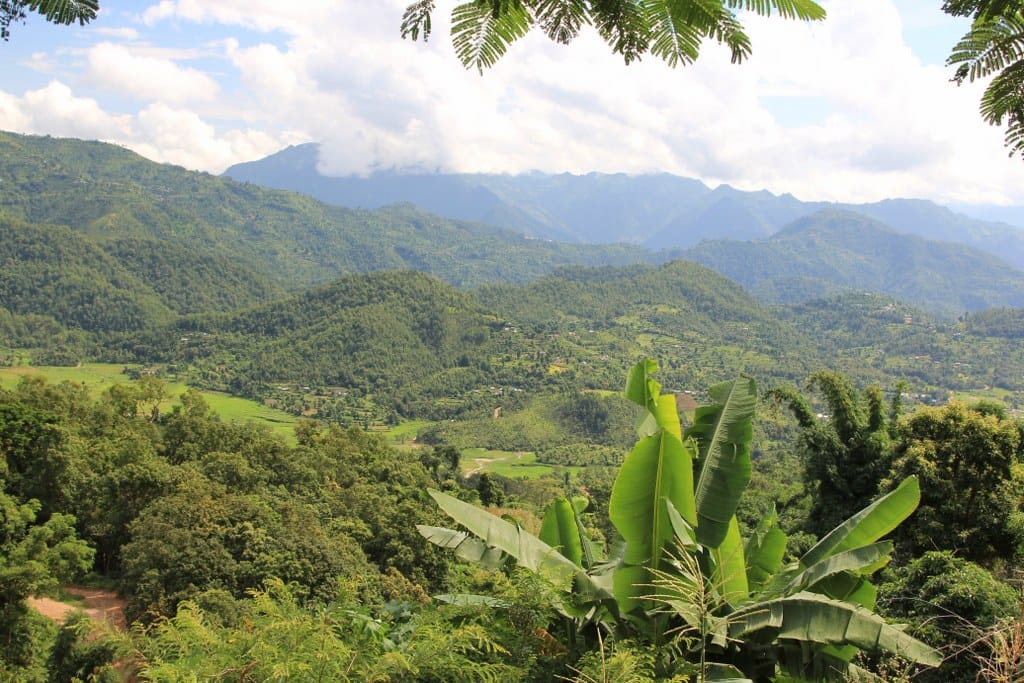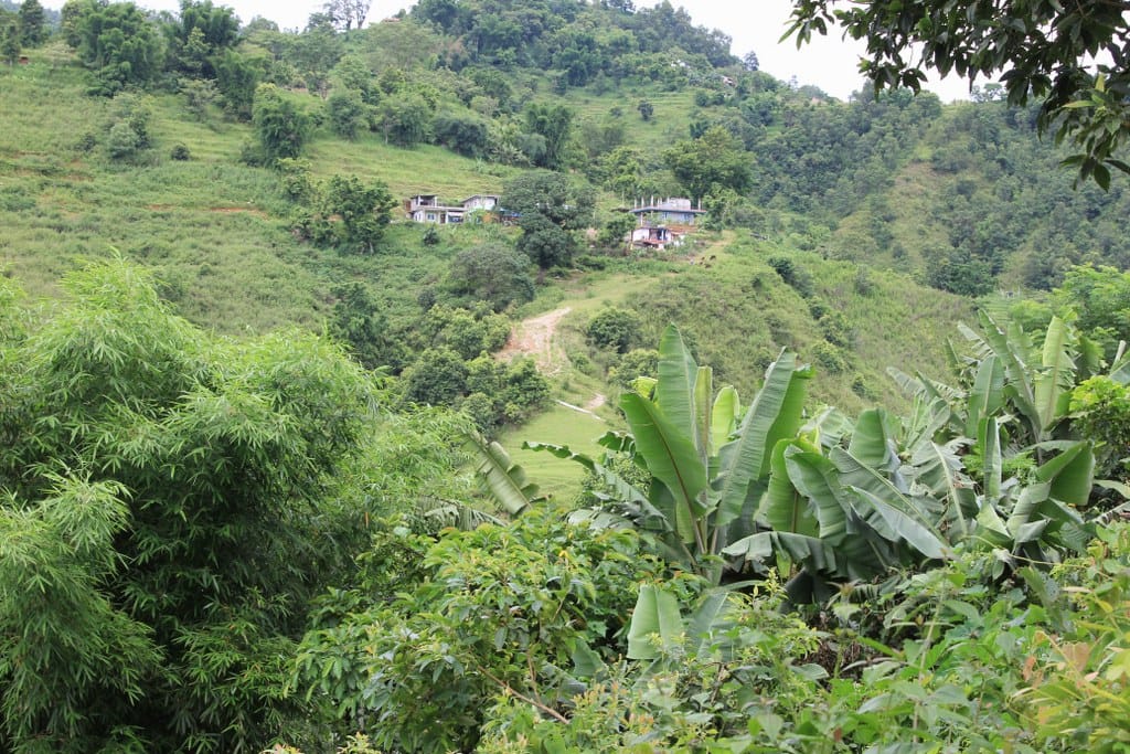 We lopen na de lunch omhoog, op naar de koffiefarm. Terwijl we lopen (afkicken van onze trekkingskilometers) treffen we prachtige vergezichten aan, schitterende omgeving. Lekker warm en vochtig vandaag dus “heerlijk” zweten.