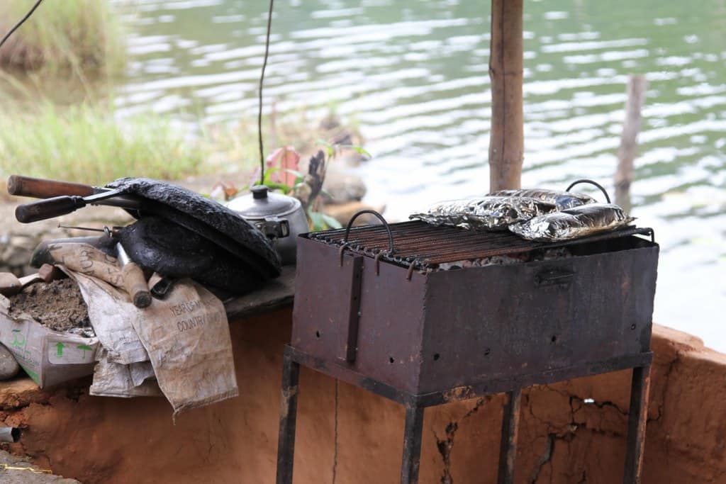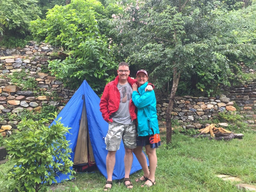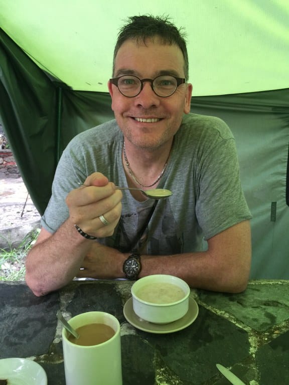 Na een paar uur wild raften (is de laatste dagen veel regen gevallen dus de rivier is lekker ruig!), komen we aan bij ons tentenkamp aan de over. Tentovernachting, lekker! Na de “douche” lopen we nog even naar het achterliggende dorpje. De tijd heeft hier lang stil gestaan zo te zien. In de avond hebben we een heerlijk diner in een tent, een BBQ. Althans de kip was van de BBQ, de rest kwam uit de keuken. Big Fig Tented Camp, we were there…
