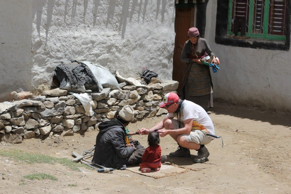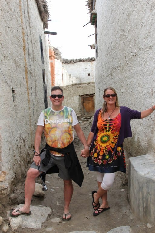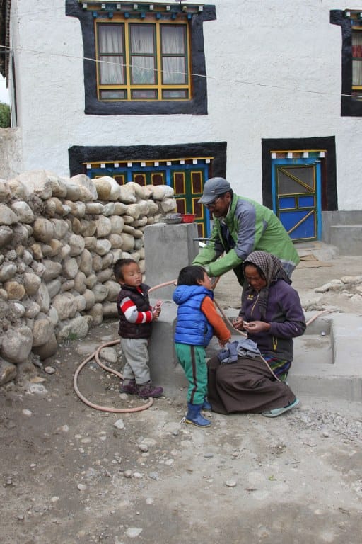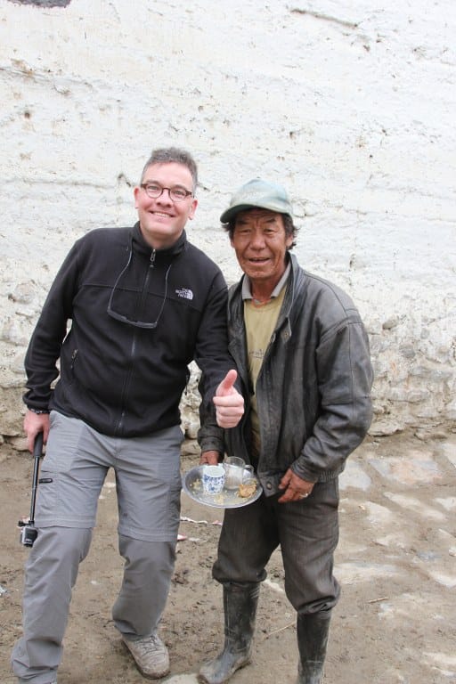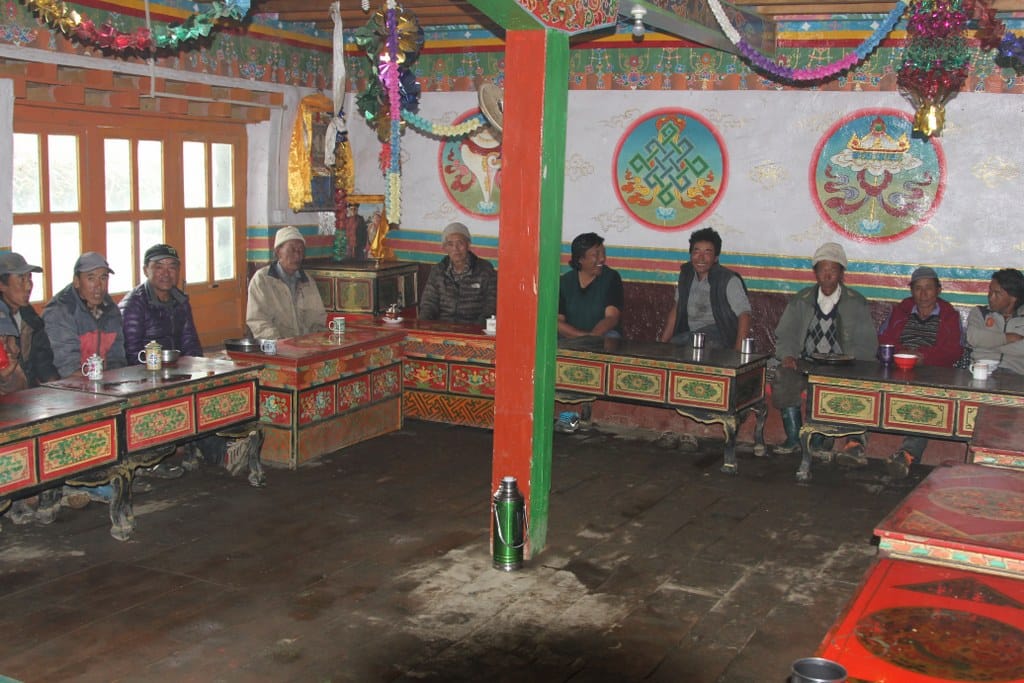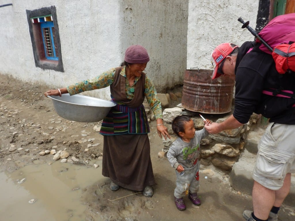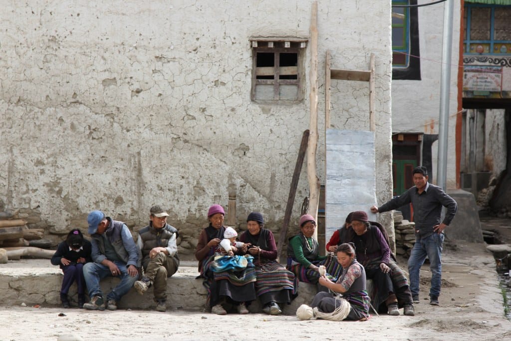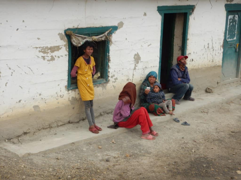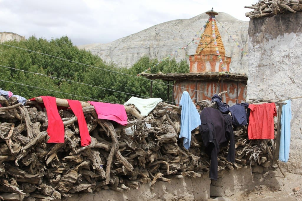 Uiteindelijk zijn we weer herenigd in Ghami. Ennuh, een lekker warme douche in Hotel Royal Mustang. Zeker nodig na een tweetal inspannende dagen. Het tegenovergestelde t.o.v. de locatie waar we vandaan kwamen. Tijd om de was even te doen en uit te hangen. Als waslijn hebben we onze reserve veters aan elkaar geknoopt, als je reist moet je niet alleen flexibel zijn maar ook creatief. Hopelijk morgenvroeg droog? Na het opfrissen maken we een “guided city-tour” met Binod. Er wonen hier ongeveer drie honderd mensen, in dit erg leuke bergplaatsje Ghami. We horen muziek en dat blijkt het jaarfeest te zijn, een festival yakthum genaamd. In een soort van “gemeenschapshuis” worden we verwelkomd met thee n een groet. Echt vriendelijke mensen in Nepal, we kunnen het niet genoeg zeggen! Zij vinden het net zo bijzonder om ons te zien als andersom. Nadien willen ze zelfs met ons op de foto. Iedereen zingt liedjes (zeker even onze dagmovie kijken), drinken thee en rijstbier. Dat laatste slaan we maar over……. Het bloed van de Yak wordt opgevangen en verdeeld onder de aanwezige, ook dit laten we zeker schieten. Dit doen ze omdat het kennelijk goed voor de gezondheid is.