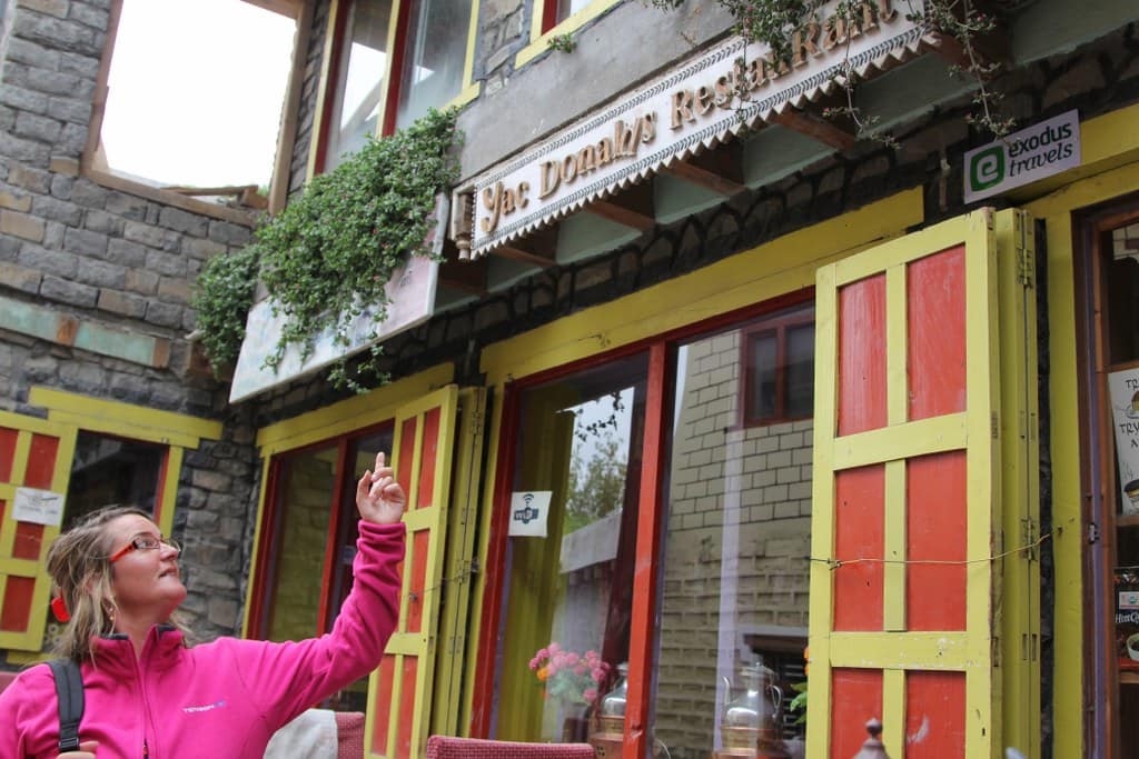 We lunchen in Nilgiri Hotel Guest House alwaar we een aantal dagen terug hebben overnacht (kamer nummer 12 met de bedden nog steeds op dezelfde plaats). Noodles soep, lekker! Ennuh, weer buiten op het terras met een prachtig uitzicht. Dit keer een redelijk stevige houten stoel. Zouden hier over een aantal jaar meer terrassen ontstaan?