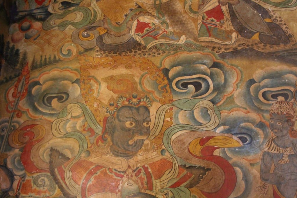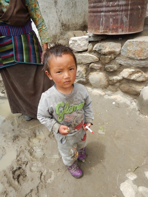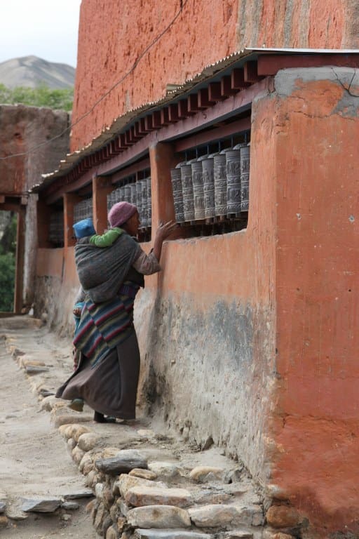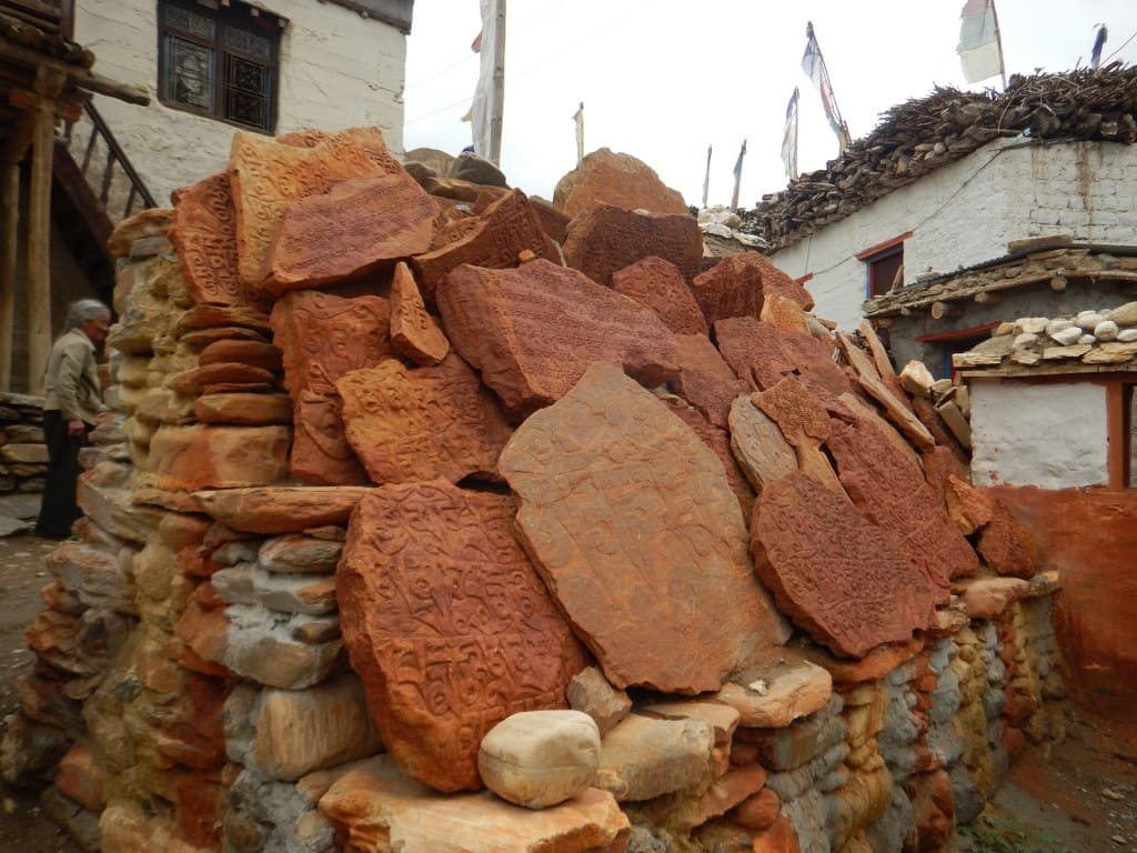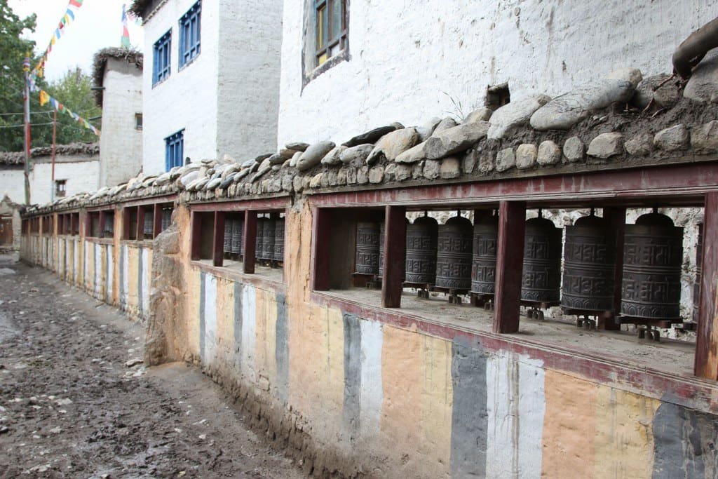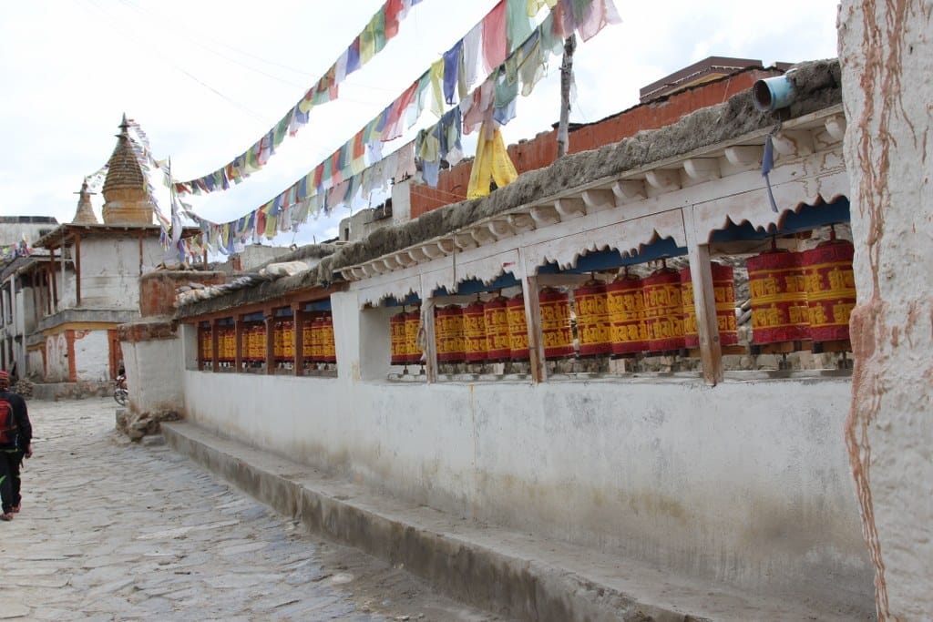 Bij Lo Manthang aangekomen, na zo’n vijf uur, gaan we meteen “inchecken” in ons “hotel”. Himalayan Guesthouse & Restaurant, www………np? Na een dik verdiende lunch even opfrissen, yes een warme douche, dus haren wassen. Daarna gaan we de “stad” verkennen. Lo Manthang staat ook op de werelderfgoed lijst van Unesco. Vroeger was deze stad ommuurd en was het verboden om buiten de stadsmuren te worden, inmiddels is dit veranderd maar de oude stadsmuren bestaan nog steeds. We zien wederom bijzondere mensen op straat die allerhande activiteiten uitvoeren die bij ons veelal niet meer aan de orde zijn en/of in een andere vorm. We bezoeken: The Jampa Monastery, The Thupchen Monastery en The Chode Gonpa was inmiddels gesloten, komen we morgen nog even voor terug. Zijn hier immers toch twee dagen.