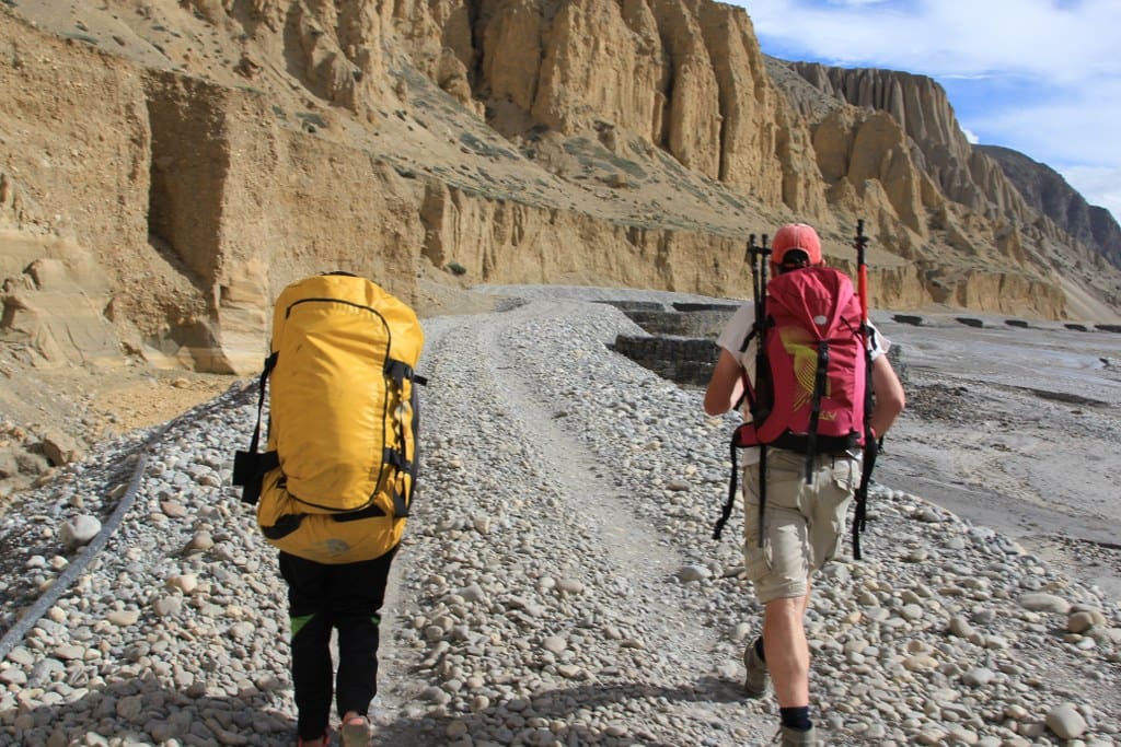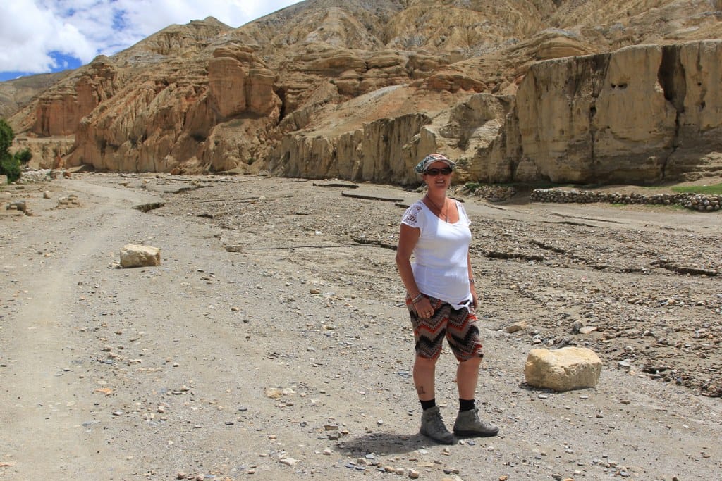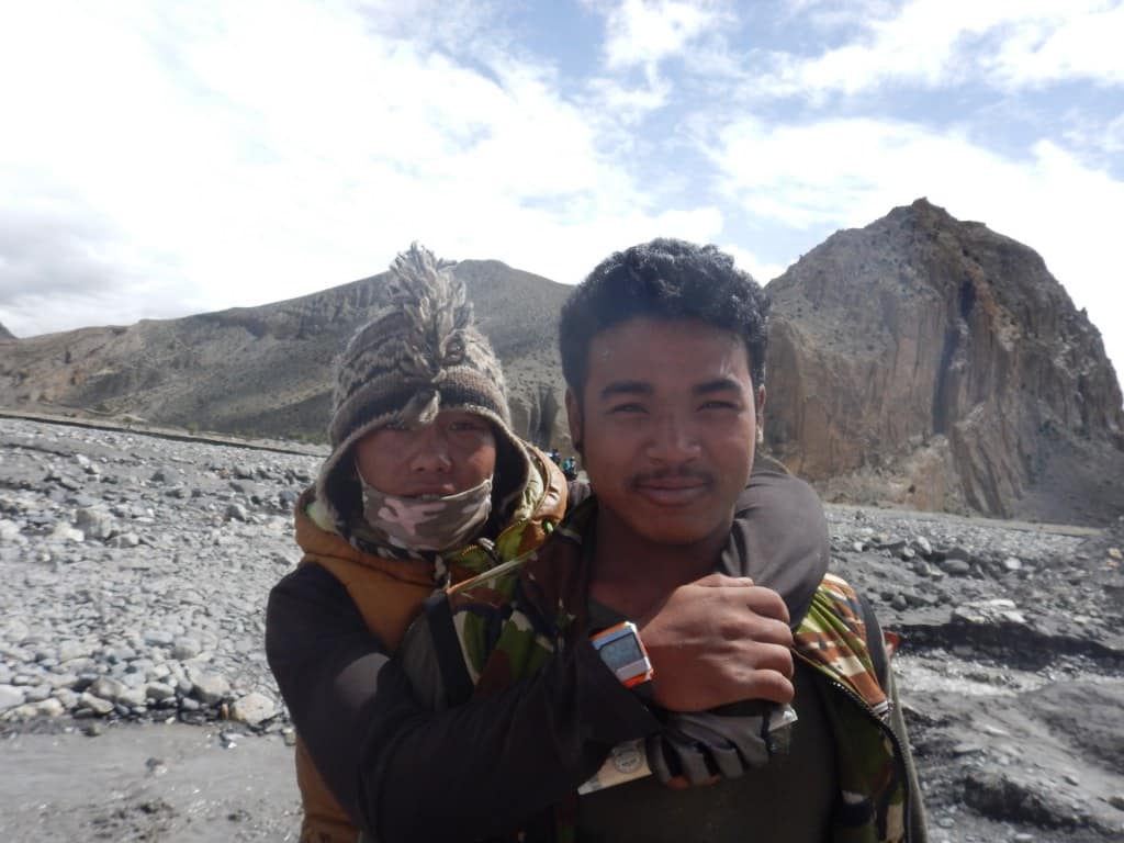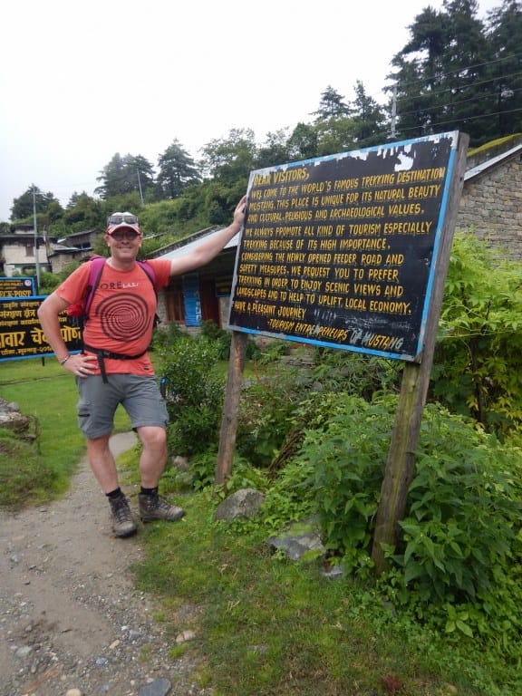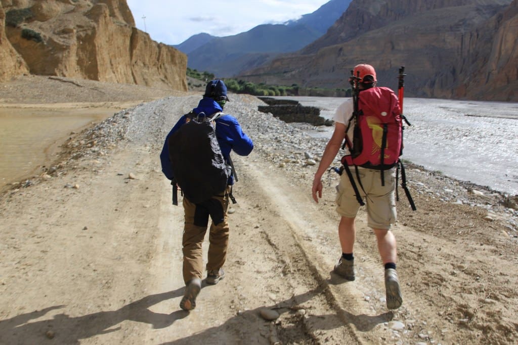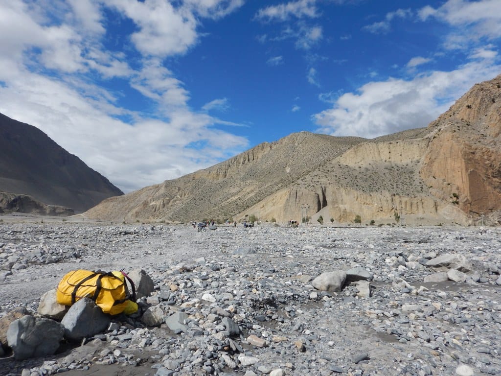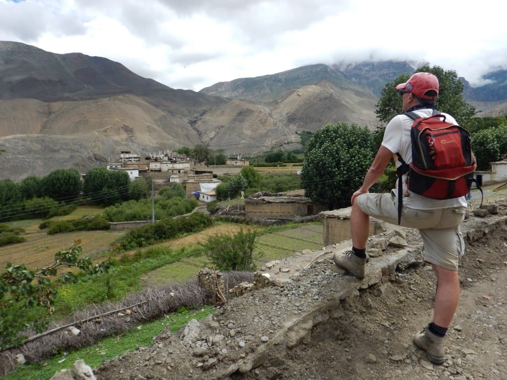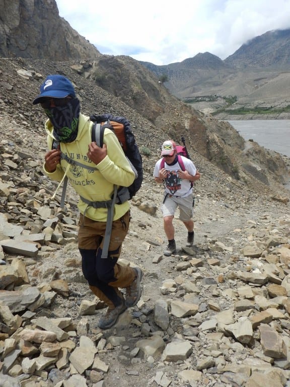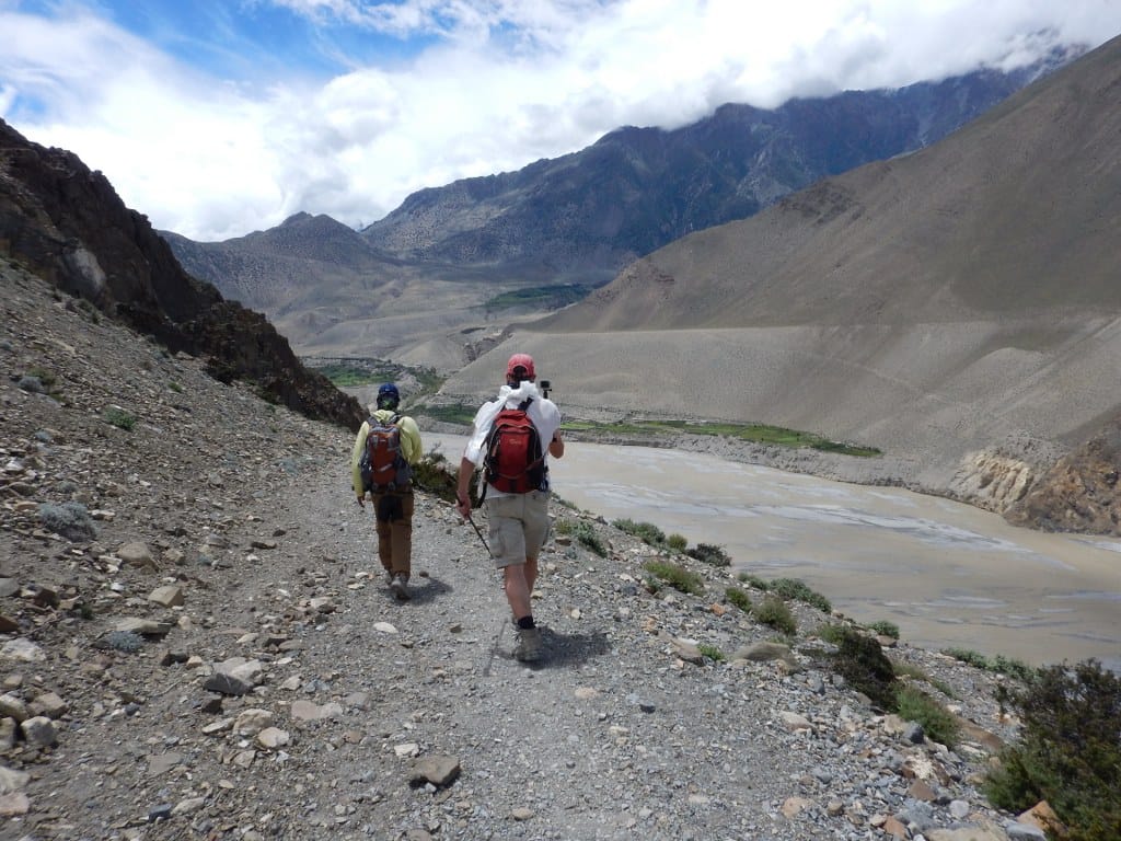 30 juli: Goedemorgen Jomsom, onze eerste nacht in het Mustang gebied is een feit. We hebben ontbijt rond 08.15 uur, voor het eerst uitslapen dus. We bestellen omelet en we krijgen gebakken eieren, alsook thee zonder melk en we krijgen met melk en suiker. Ach ja, we zijn in Nepal. Hoe dan ook een prima bodem voor onze eerste serieuze tocht in het mustang gebied. Rond 09.00 uur zijn we weg, samen met onze drager Bhim. Bhim zal de gehele trekking met ons meegaan en is een leuke vent.