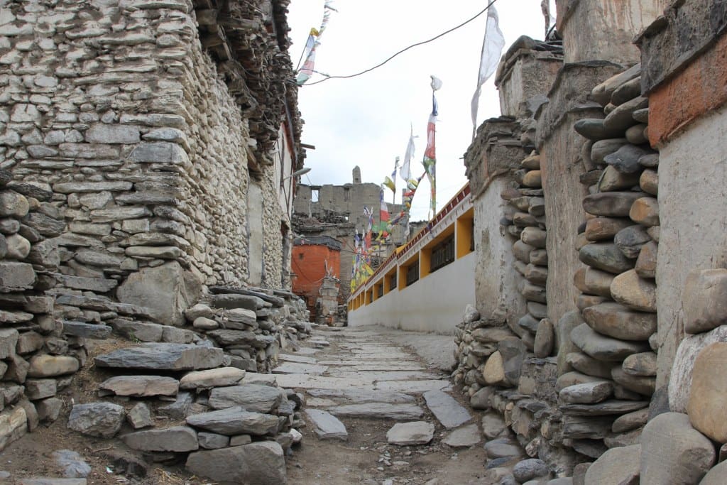 We lunchen daar in Paradise, trekkers lodge, met Tibetaans brood en een kaneelpannekoek. We hebben hier een goed Wifi (!!??), we facetimen ff met het thuisfront wat de Nepalezen erg grappig vinden. We lopen eerst door het prachtige bergdorpje Kagbeni, erg bijzonder om te zien hoe de mensen hier leven.
