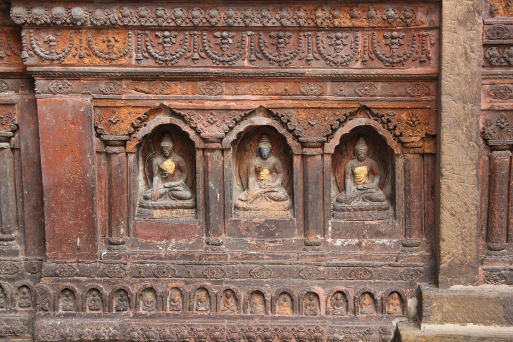 Door de aardbeving, in de steigers! “instortingsgevaar”. Mahabuddha Temple ook wel genaamd “The Temple of a thousand Buddhas” omdat er voor de aardbeving van 1934, 9.999 Buddhas aanwezig waren, de tempel werd verwoest en na herstel waren er nog 9000 buddhas over. Deze tempel is een remake van het originele type die staat in India, Bodhgaya. Mahabodhi tempelcomplex: Deze plek is één van de vier heilige plaatsen gerelateerd aan het leven van de Boeddha (566 tot 486 voor Christus) en in het bijzonder met betrekking tot het bereiken van verlichting. De eerste tempel werd gebouwd door keizer Asoka in de 3e eeuw voor Christus en de huidige tempel dateert uit de 5e of 6e eeuw. Het is één van de vroegste boeddhistische tempels die volledig uit baksteen is opgebouwd en nog steeds intact is in India. Het Mahabodhi tempelcomplex stamt uit de late Gupta periode en is vernoemd naar de Bodhi boom, waaronder de Boeddha zat toen hij het hoogste en volmaakte inzicht verkreeg. Unesco lijst 1056.