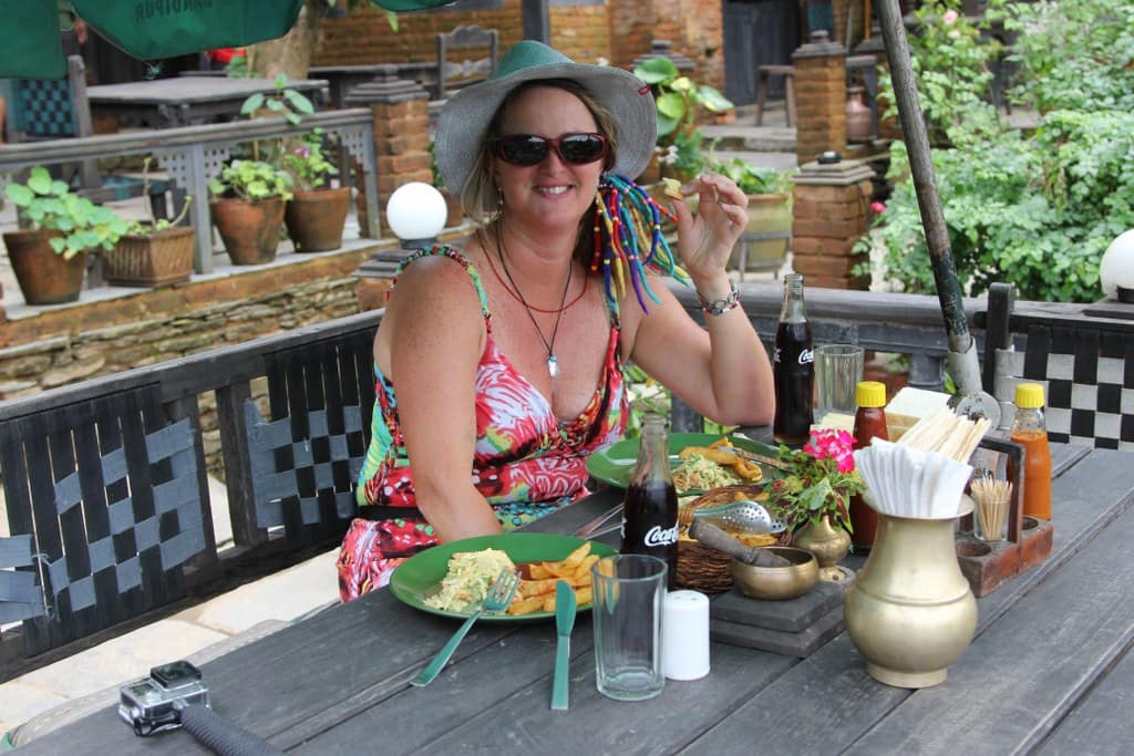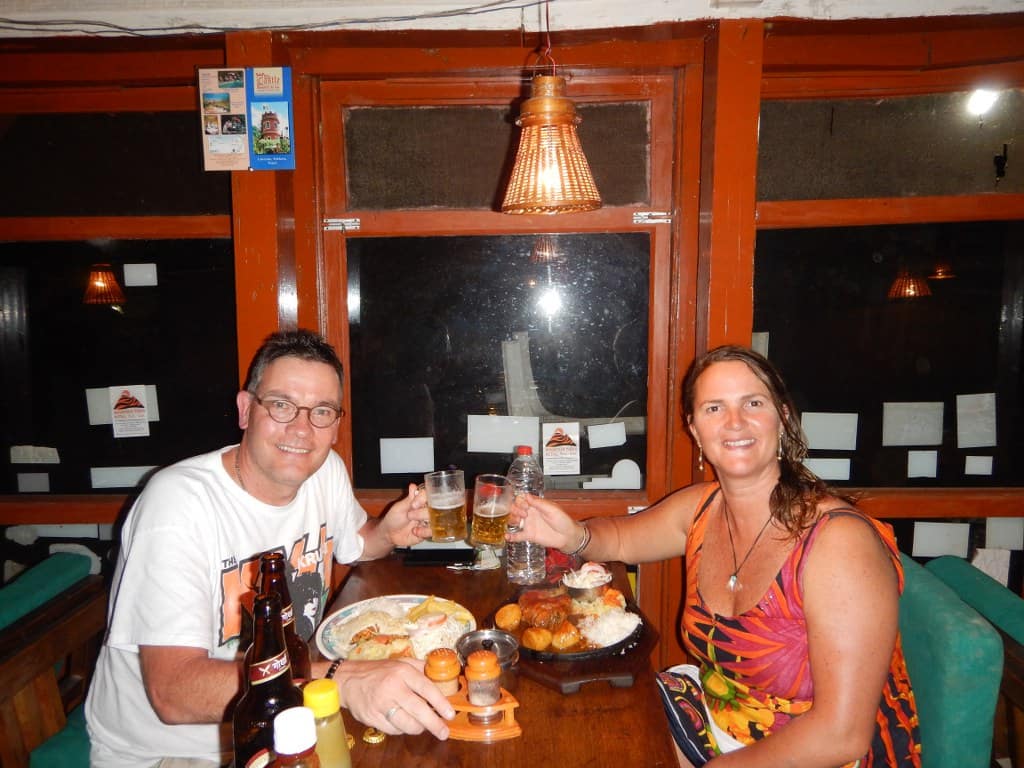 Beneden aan te komen staat Ruud al te wachten (1,5 uur in de lucht staren is best vermoeiend). Jolanda is een beetje dol maar een super ervaring rijker! Goed gedaan dus! Na het gliden ff op naar onze kamer, het was immers om 05.00 uur alweer dag, deze dag. We hebben de Ganesh Suite, een super luxe kamer in ons hotel. De badkamer is ongeveer net zo groot als sommige kamers in het Mustang gebied. We waren ff vergeten hoe dat ook alweer was. Einde van de middag ff een drankje en aansluitend een hapje eten bij de Moondance bar and Restaurant.