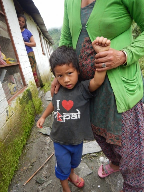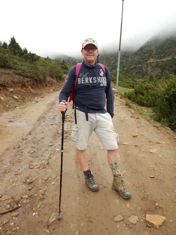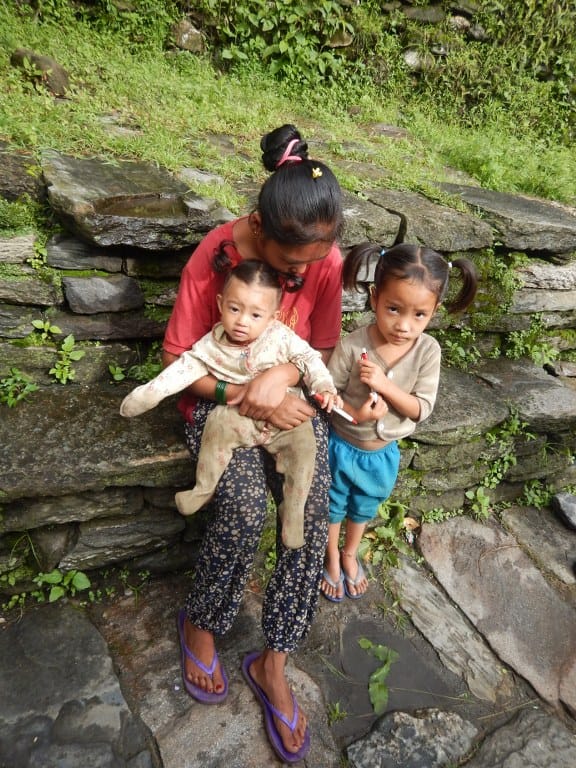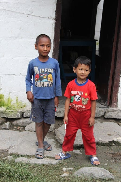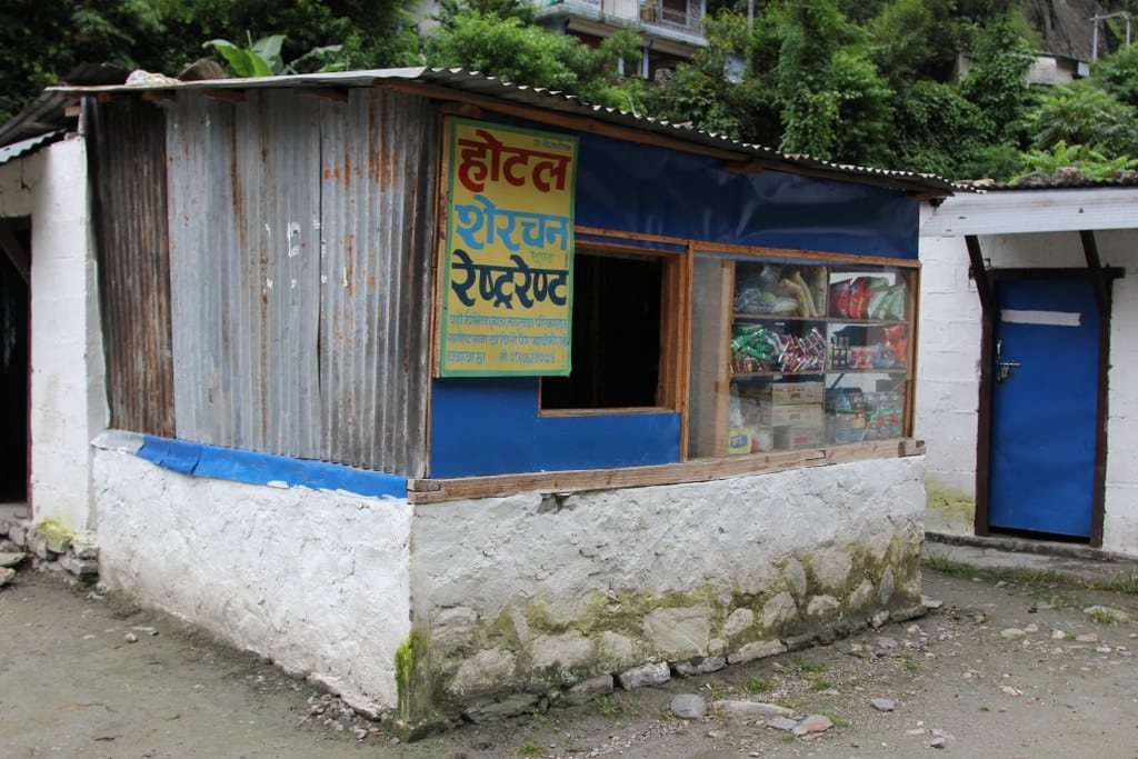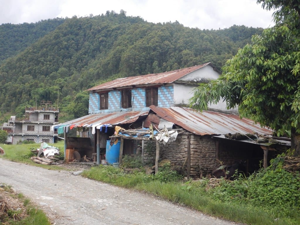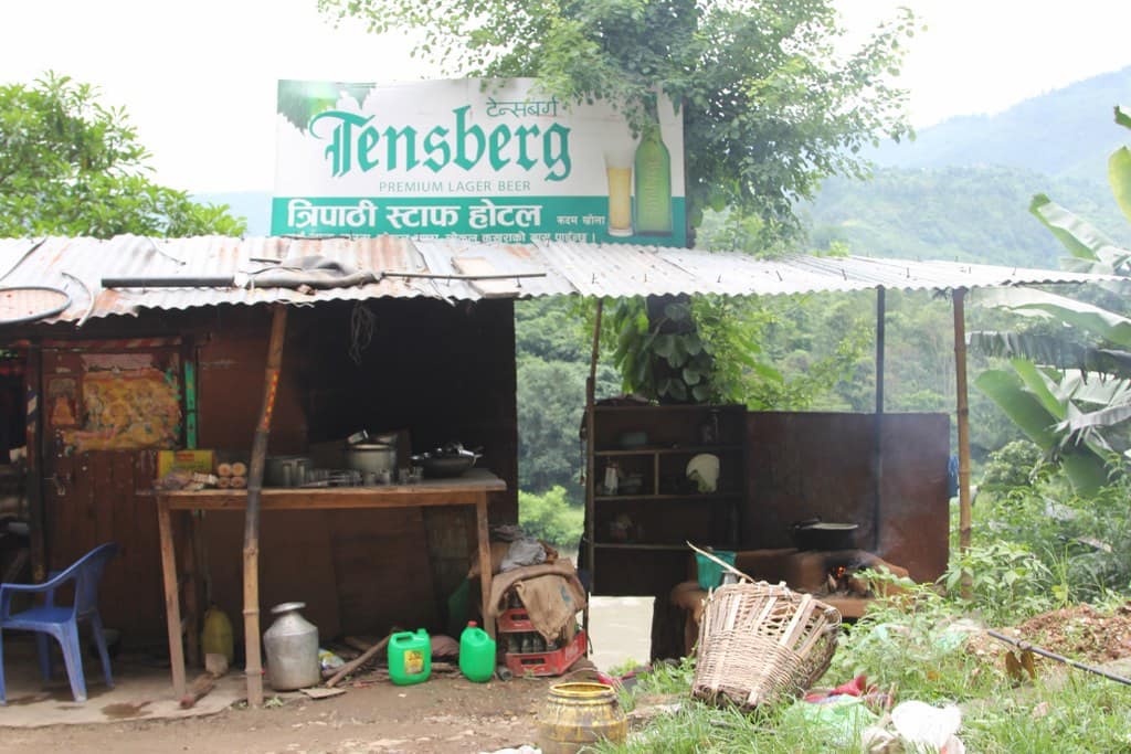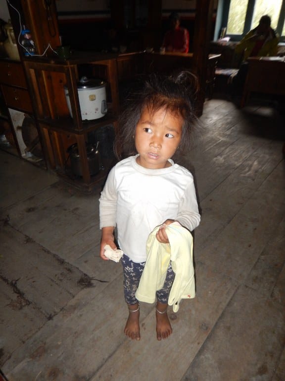 Rond 17.00 uur komen we aan bij onze Guesthouse/hotel. Nilgiri Guest House & Restaurant, zie ook: www.wijhebbengeenwebsiteindebergenvannepal.com. We mogen even gebruik maken van de “Bath-Room”, helaas geen warm water…. Na zo’n zware dag, en je benen vol modder, zou een lekkere warme douche wel welkom zijn, ook voor de reuk trouwens! Tja, tis nie anders. We kunnen ons wat opfrissen en dat is ook genoeg ook. We hebben een zeer primitief kamertje, geen elektriciteit en water. Twee planken met een matrasje er op en een eigen gat in de kamer, oftewel wc….. We mogen ’s avond bij deze familie in de keuken mee eten. Echt een hele leuke ervaring na een pittige dag. We gaan lekker rond 21.00 uur plat. Vandaag was de zonnebrand en zonnebril niet echt noodzakelijk.