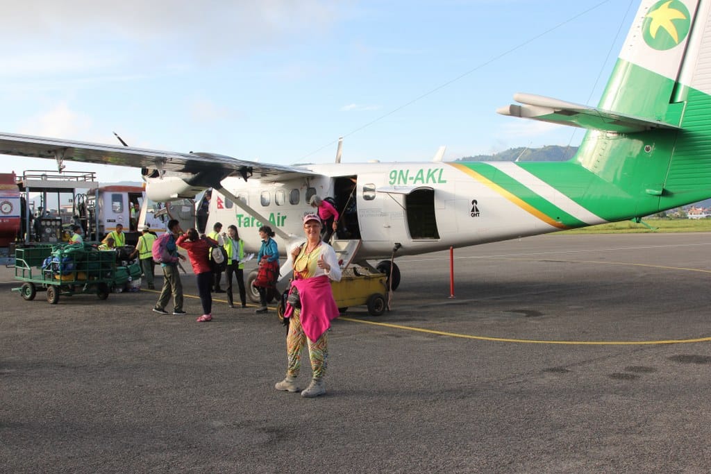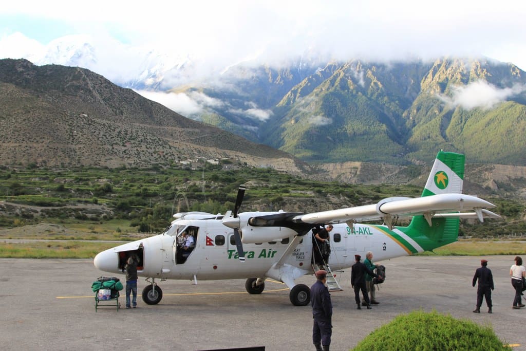 9 augustus: Goedemorgen Jomson, voor de tweede keer. 05.00 uur op, op naar de Airport rond 06.00 uur. Grappig dat we om 06.00 uur in ons hotel nog aan de thee zitten en om 06.30 uur al in de lucht hangen. Passagiers van Pokhara er uit en wij er in, duurt ongeveer 5 minuten en dan zijn we weer weg. Gelukkig helder weer, dus we hebben een prachtig uitzicht over de toppen van het Himalaya gebergte, indrukwekkend. Het vliegtuig is uitverkocht er zitten wel 18 personen in. Gezien de omgeving begrijpen we nu wel waarom we niet zijn vertrokken naar Jomsom, met de bewolking die er toen was. In Pokhara aangekomen, na een klein half uurtje, zitten we ook weer binnen vijf minuten in de taxi naar ons hotel. Hoezo snel weg van een luchthaven. Terwijl uitchecken is het vliegtuigje alweer vol en in de lucht. Zo gaat dat hier!