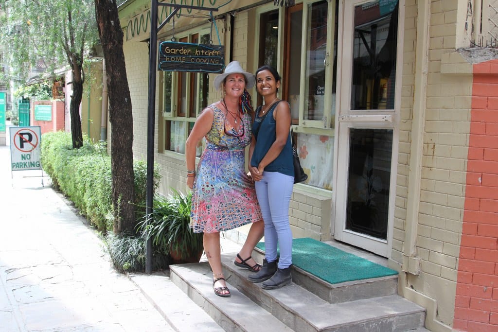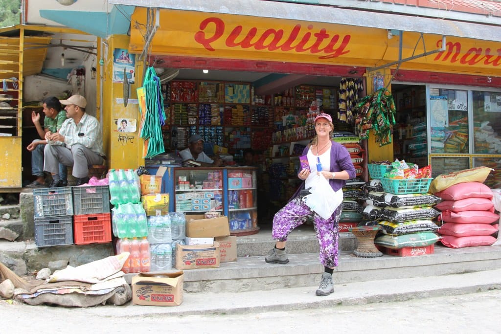 Met Laxmi van “Reis met mij”, na de lunch nog ff op pad. Zij komt uit Nepal, maar spreekt prima Nederlands/Belgisch omdat ze drie jaar in België heeft gewoon met haar man Maxim. Hier kopen we een mala.