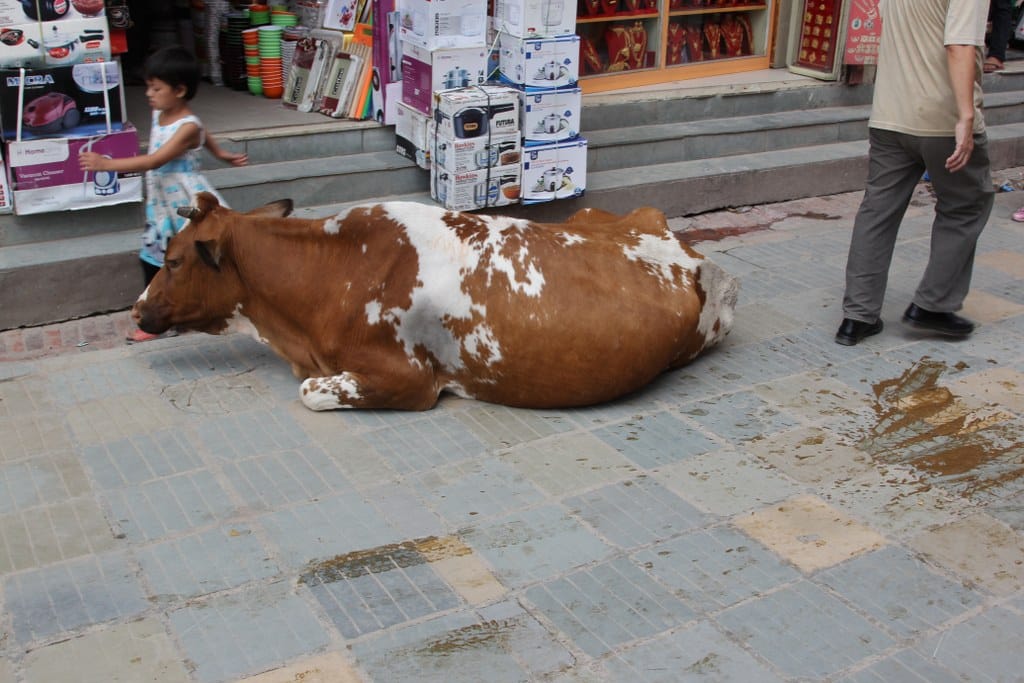 Koeien zijn hier heilig verklaard, lopen dan ook gewoon midden in het centrum rond. Bij het doden van een koe, kun je voor 1,5 jaar de cel in.